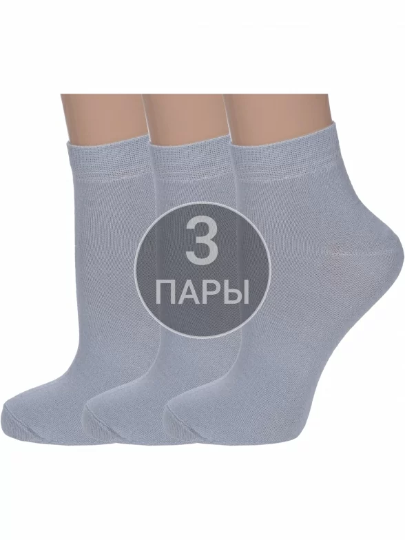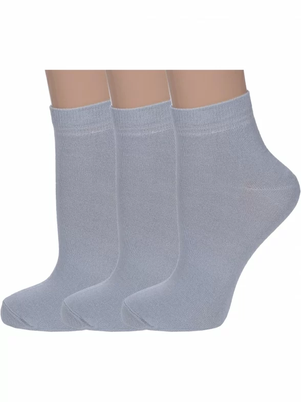 Комплект детских носков из 3 пар, летние, короткие, цвет серый, классические, шов обычный (не бесшовные), принт (рисунок): однотонный, без рисунков/узоров, состав: 88% хлопок, 10% полиамид, 2% эластан, арт. 3-d-1229. Производитель «ХОХ» Россия под брендом «Хох».