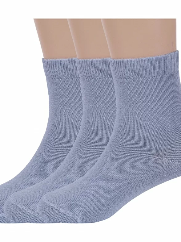 Комплект детских носков из 3 пар, круглогодичные, средней длины, цвет светло-серый, классические, шов обычный (не бесшовные), принт (рисунок): однотонный, без рисунков/узоров, состав: 88% хлопок, 10% полиамид, 2% эластан, арт. 3-d-1227. Производитель «ХОХ» Россия под брендом «Хох».