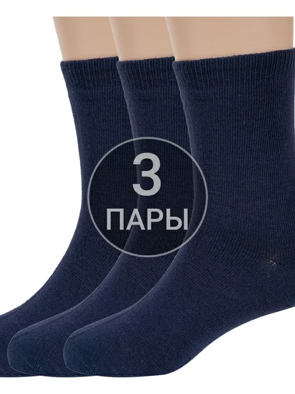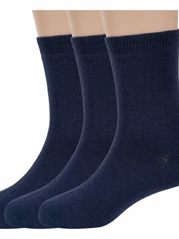 Комплект детских носков из 3 пар, круглогодичные, средней длины, цвет темно-синие, классические, шов обычный (не бесшовные), принт (рисунок): однотонный, без рисунков/узоров, состав: 88% хлопок, 10% полиамид, 2% эластан, арт. 3-d-1227. Производитель «ХОХ» Россия под брендом «Хох».