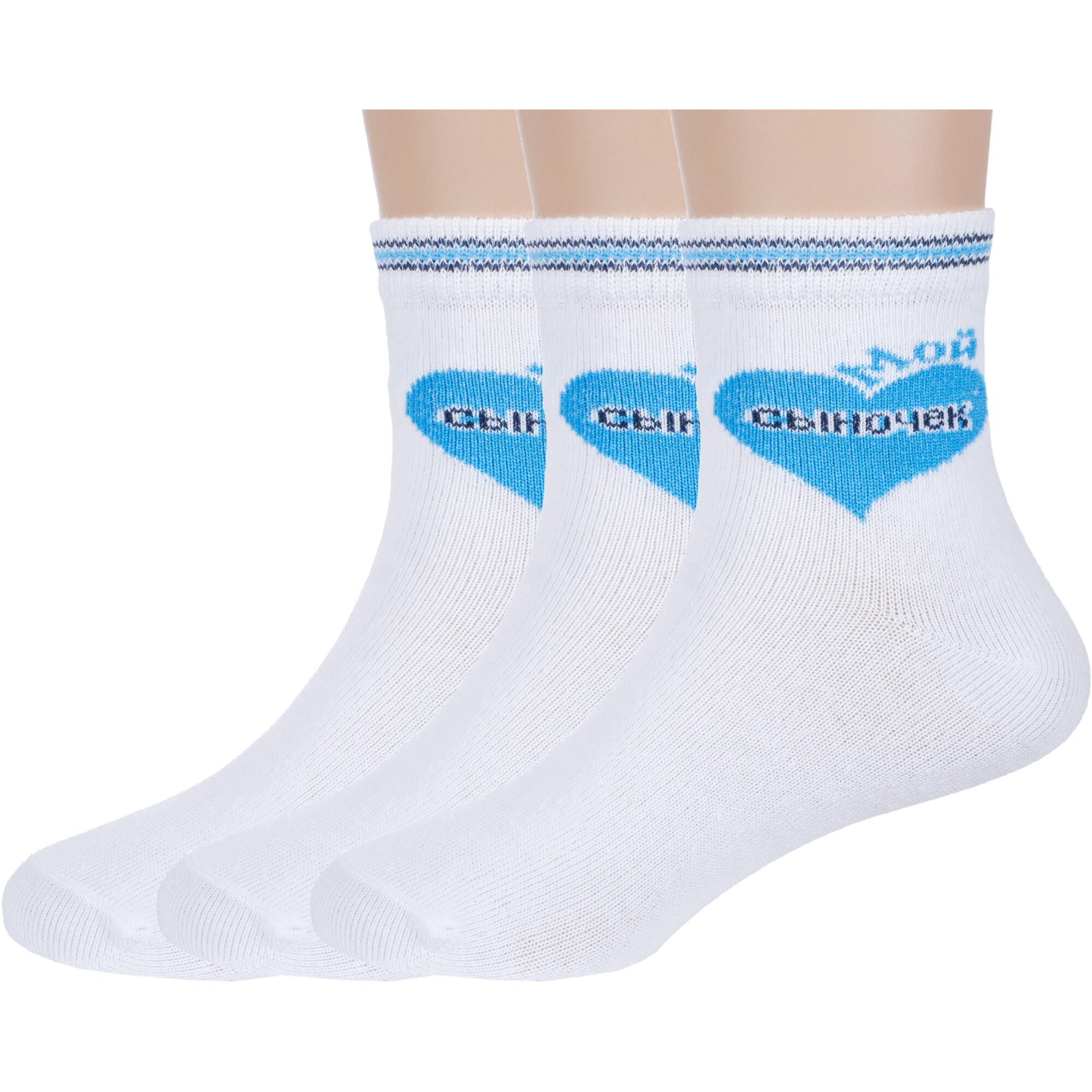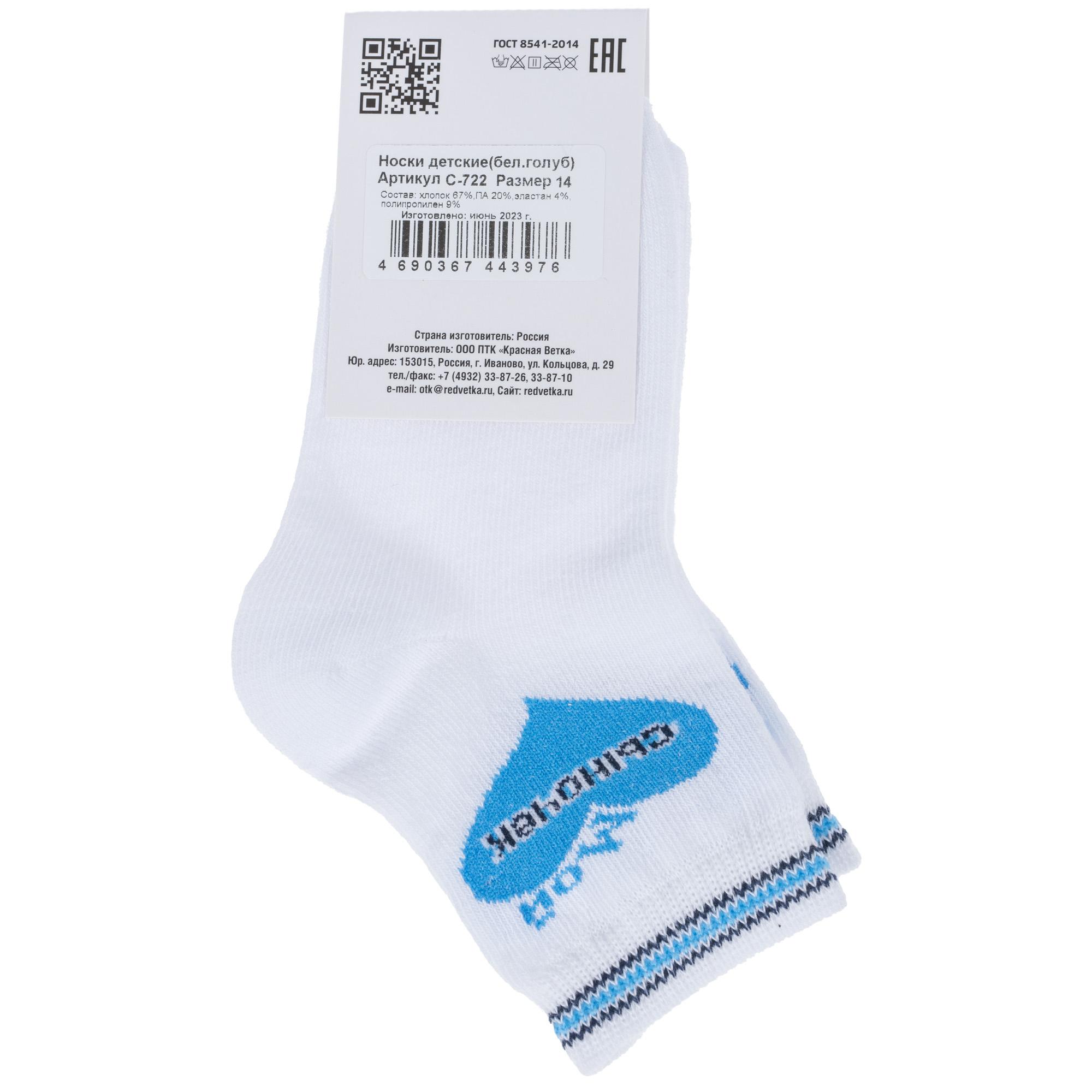 Комплект детских носков из 3 пар, круглогодичные, укороченные, цвет бело-голубой, прикольные, состав: 67% хлопок, 20% полиамид, 9% полипропилен, 4% эластан, фабричный артикул 3-С-722. Производитель «КРАСНАЯ ВЕТКА» Россия под брендом «Красная ветка».