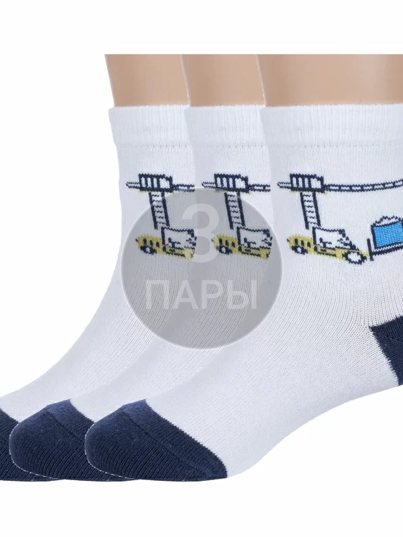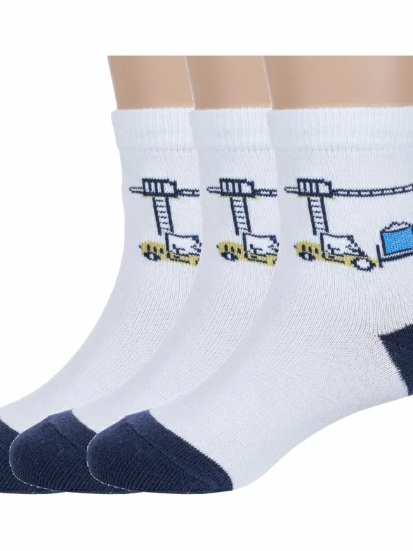 Комплект детских носков из 3 пар, круглогодичные, укороченные, цвет белый, прикольные, состав: 68% хлопок, 21% полиамид, 7% полипропилен, 4% эластан, фабричный артикул 3-С-2111. Производитель «КРАСНАЯ ВЕТКА» Россия под брендом «Красная ветка».