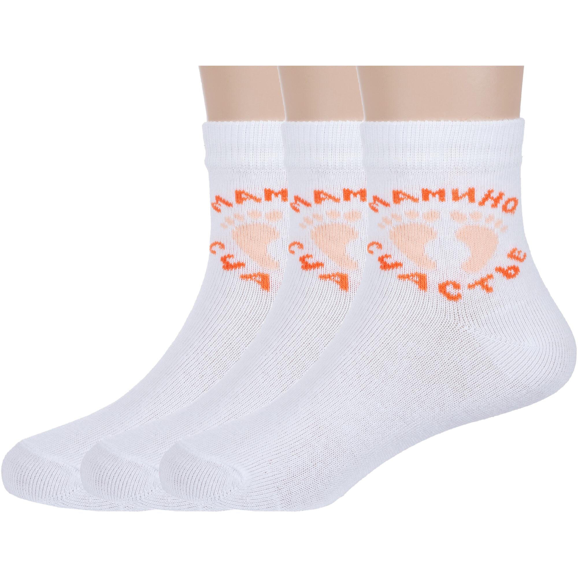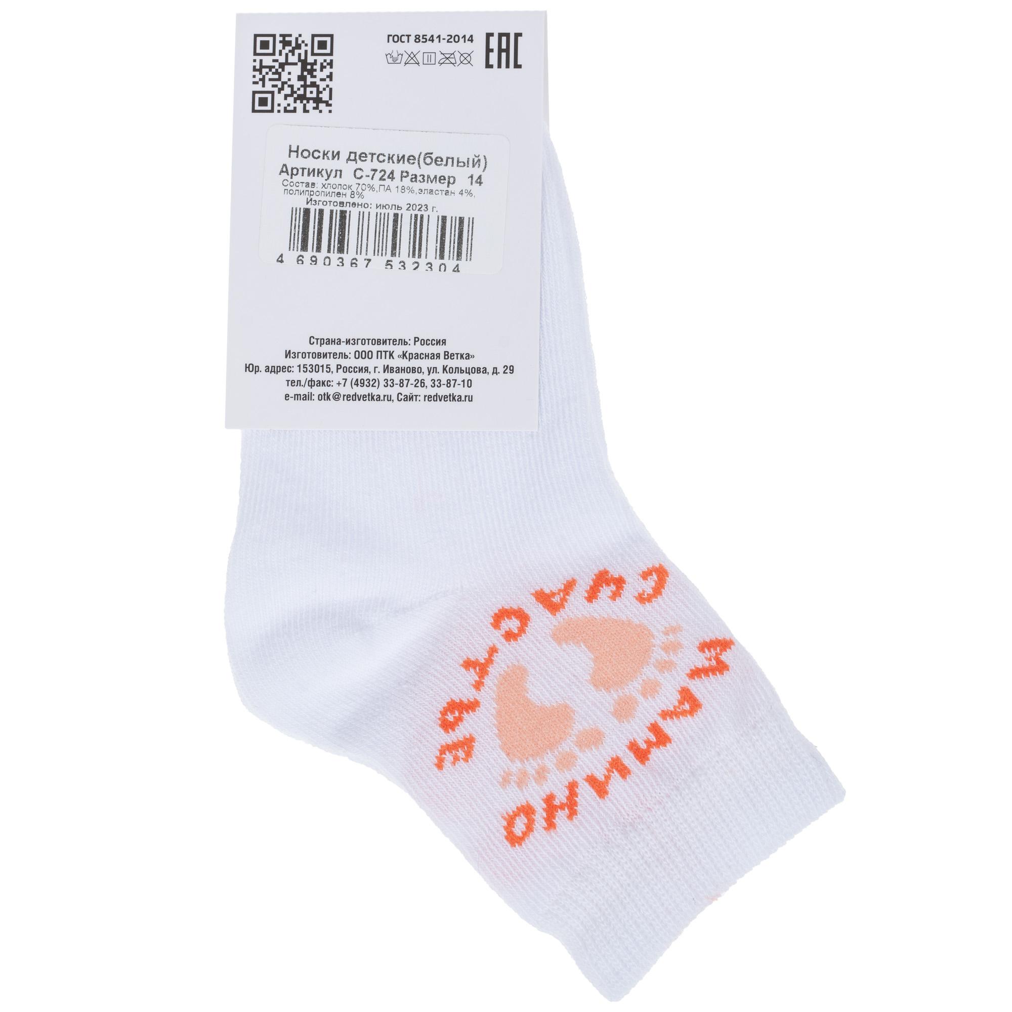 Комплект детских носков из 3 пар, круглогодичные, укороченные, цвет белый, прикольные, состав: 70% хлопок, 18% полиамид, 8% полипропилен, 4% эластан, фабричный артикул 3-С-724. Производитель «КРАСНАЯ ВЕТКА» Россия под брендом «Красная ветка».
