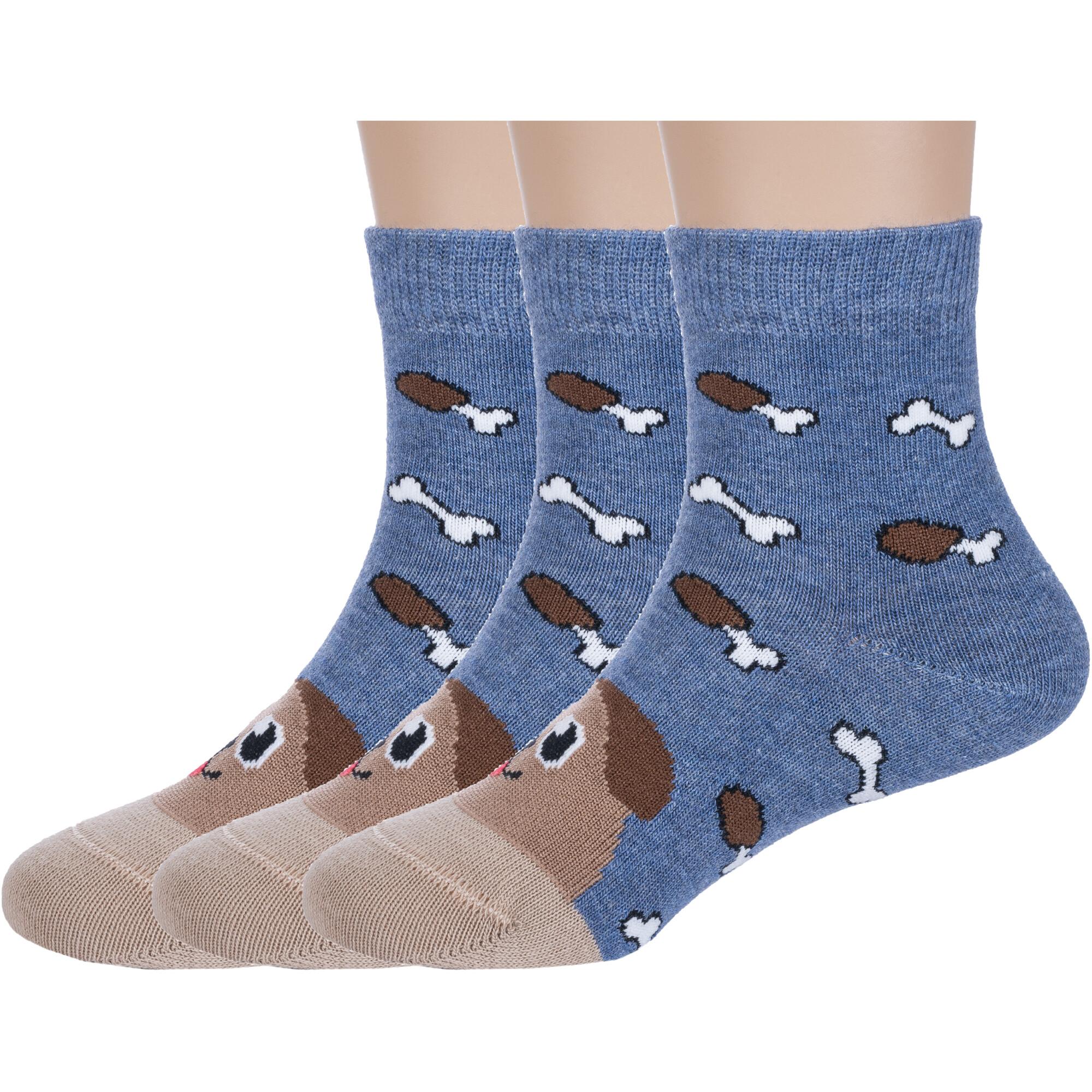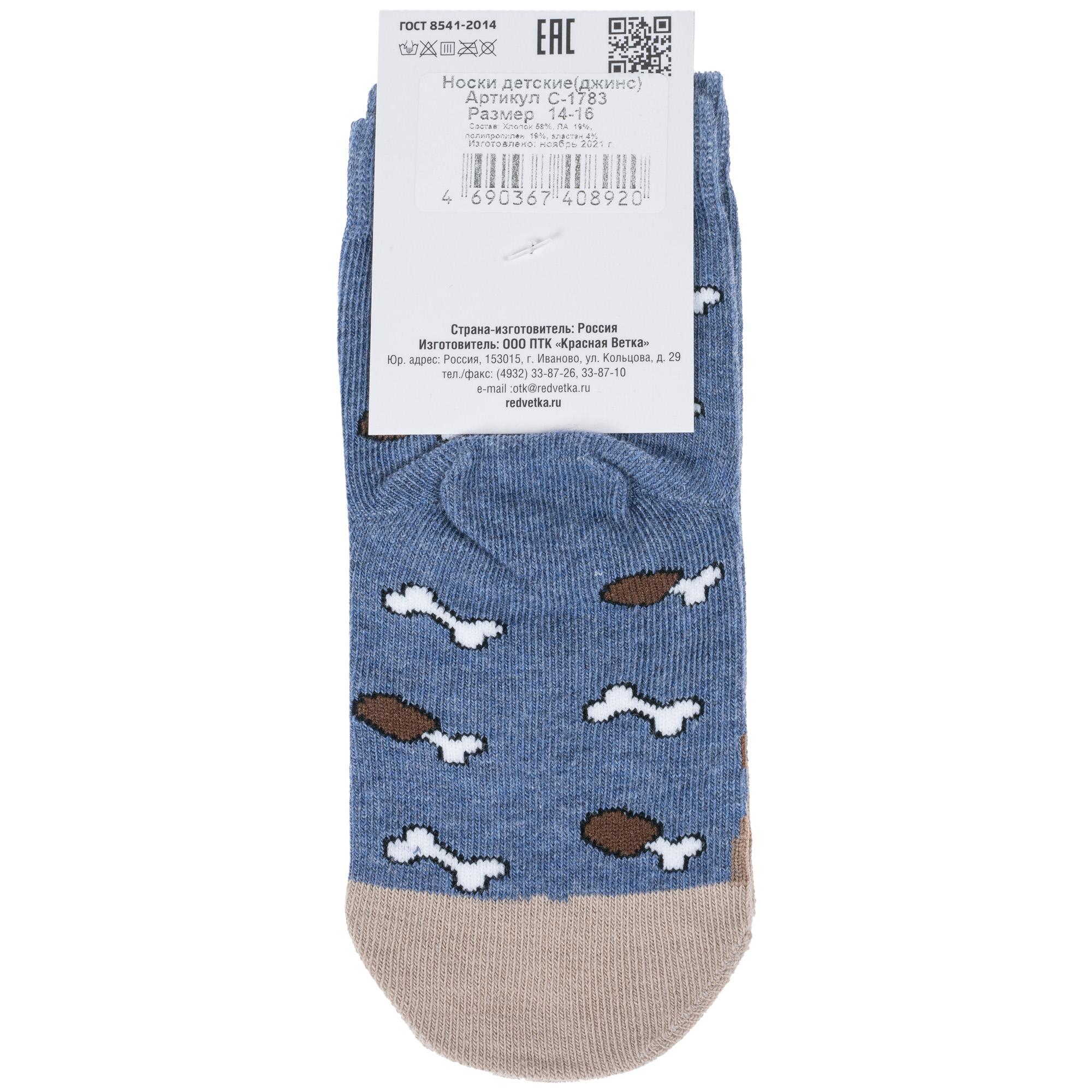 Комплект детских носков из 3 пар, круглогодичные, укороченные, цвет джинсовый, прикольные, состав: 58% хлопок, 19% полиамид, 19% полипропилен, 4% эластан, фабричный артикул 3-С-1783. Производитель «КРАСНАЯ ВЕТКА» Россия под брендом «Красная ветка».