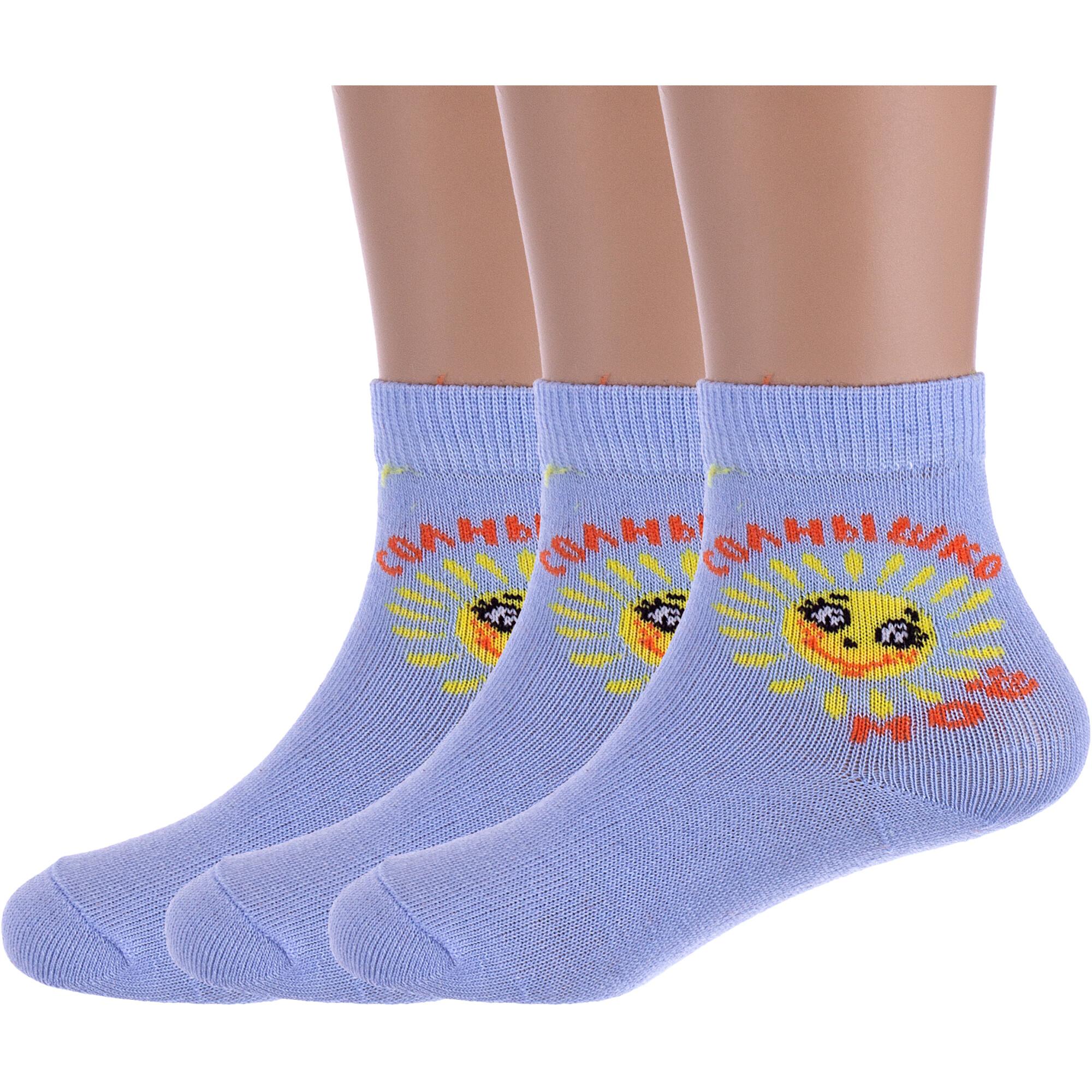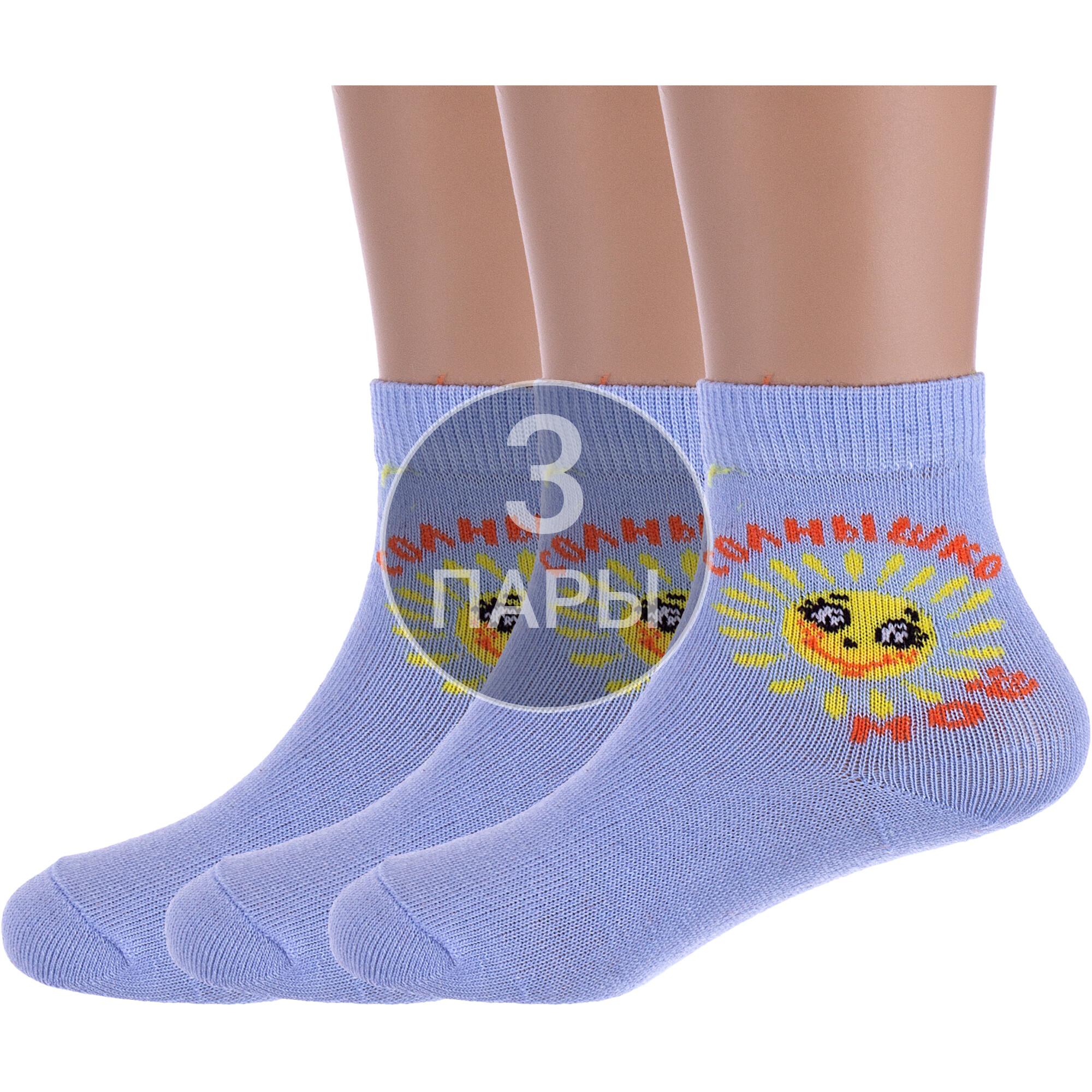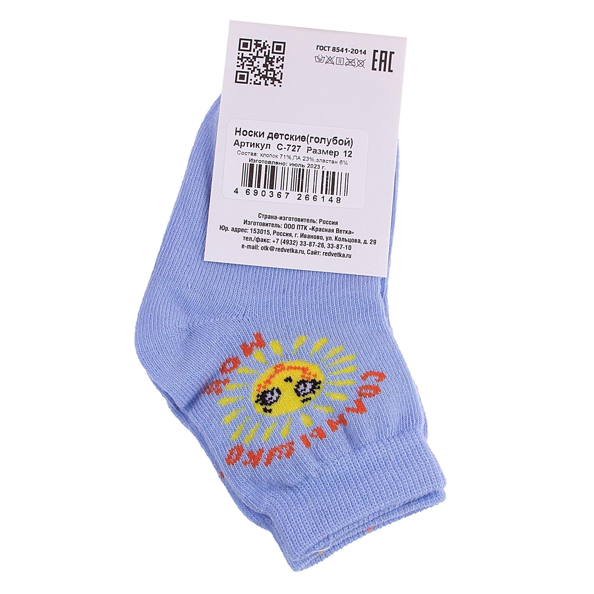 Комплект детских носков из 3 пар, круглогодичные, укороченные, цвет голубой, прикольные, состав: 71% хлопок, 23% полиамид, 6% эластан, фабричный артикул 3-С-727. Производитель «КРАСНАЯ ВЕТКА» Россия под брендом «Красная ветка».