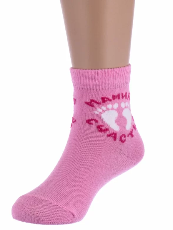 Комплект детских носков из 3 пар, круглогодичные, укороченные, цвет розовый, прикольные, состав: 80% хлопок, 18% полиамид, 2% эластан, фабричный артикул 3-С-724. Производитель «КРАСНАЯ ВЕТКА» Россия под брендом «Красная ветка».
