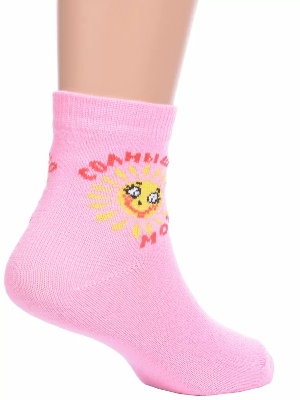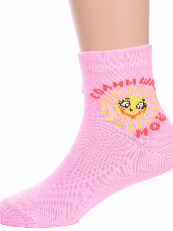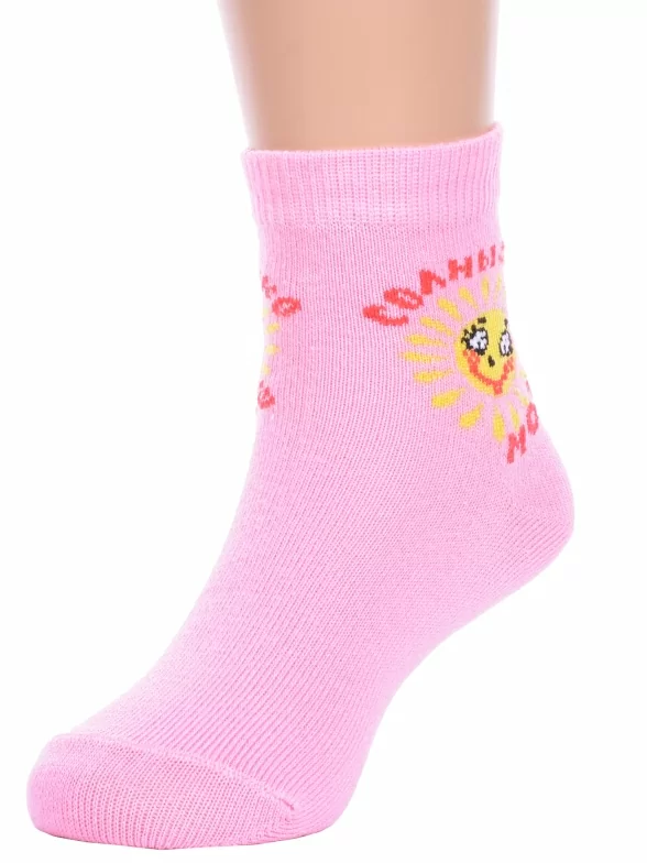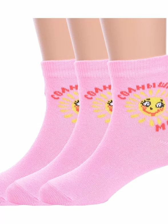 Комплект детских носков из 3 пар, круглогодичные, укороченные, цвет розовый, повседневные, возможно бесшовные, принт (рисунок): надписи, с узором, крупные контрастные рисунки, состав: 80% хлопок, 18% полиамид, 2% эластан, арт. 3-С-727. Производитель «КРАСНАЯ ВЕТКА» Россия под брендом «Красная ветка».