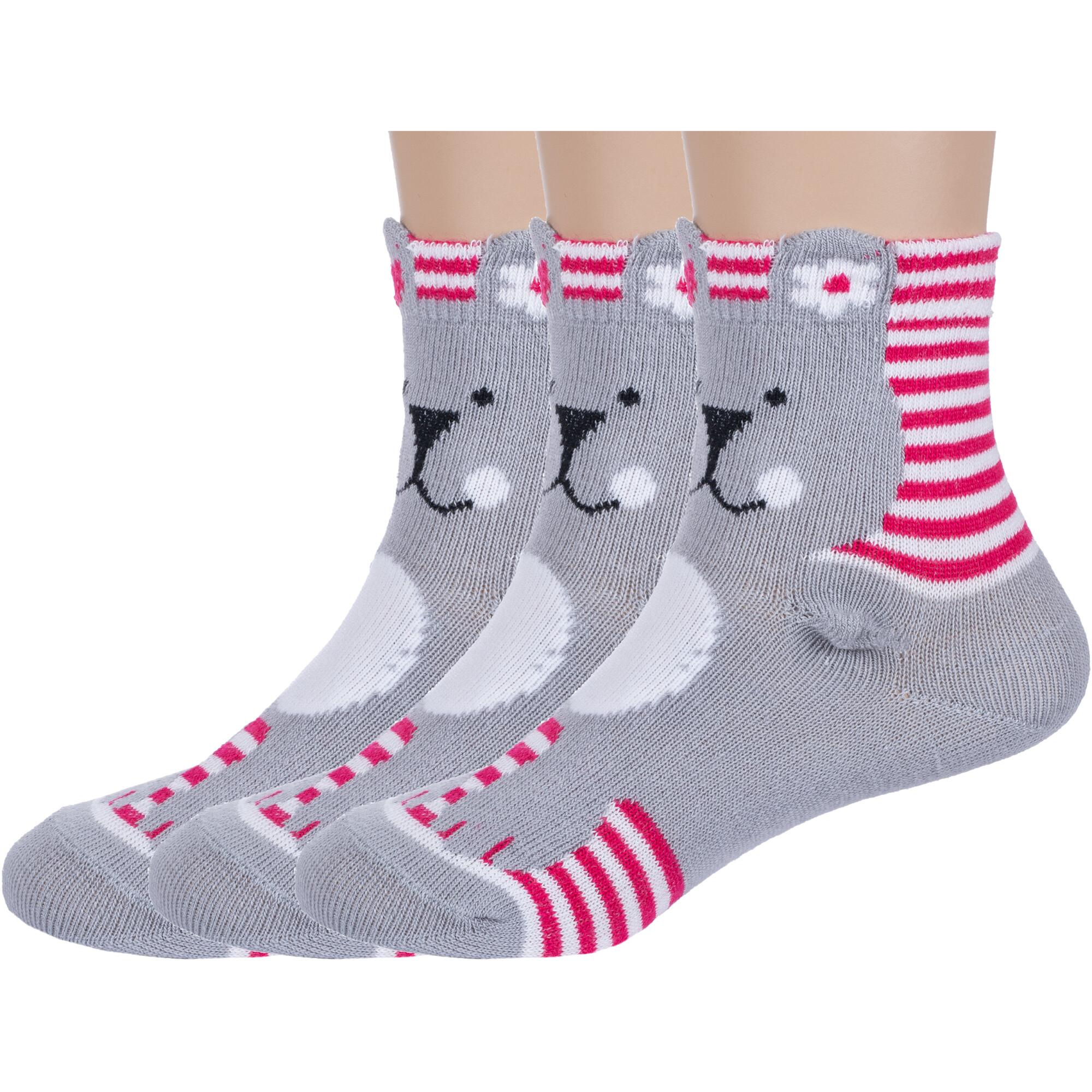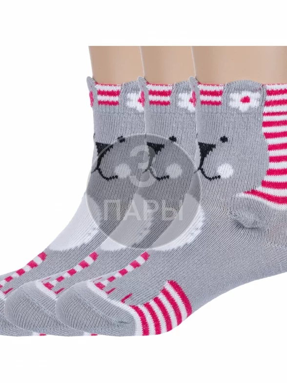 Комплект детских носков из 3 пар, круглогодичные, укороченные, цвет розовый, прикольные, состав: 71% хлопок, 20% полиамид, 5% полипропилен, 4% эластан, фабричный артикул 3-С-771. Производитель «КРАСНАЯ ВЕТКА» Россия под брендом «Красная ветка».