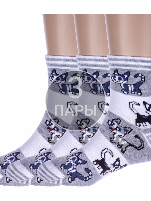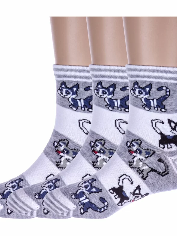Комплект детских носков из 3 пар, круглогодичные, укороченные, цвет серый, прикольные, состав: 53% хлопок, 25% полипропилен, 18% полиамид, 4% эластан, фабричный артикул 3-С-1702. Производитель «КРАСНАЯ ВЕТКА» Россия под брендом «Красная ветка».