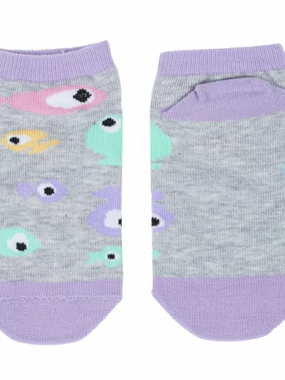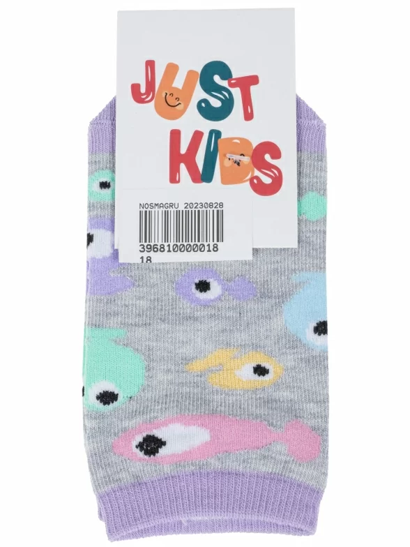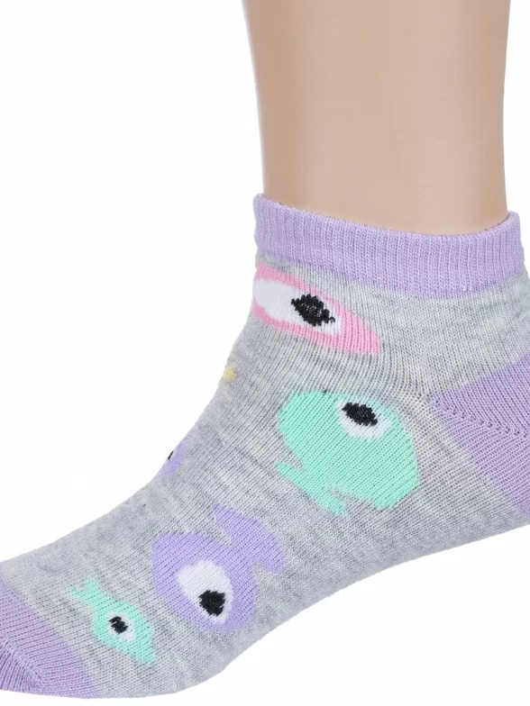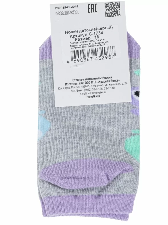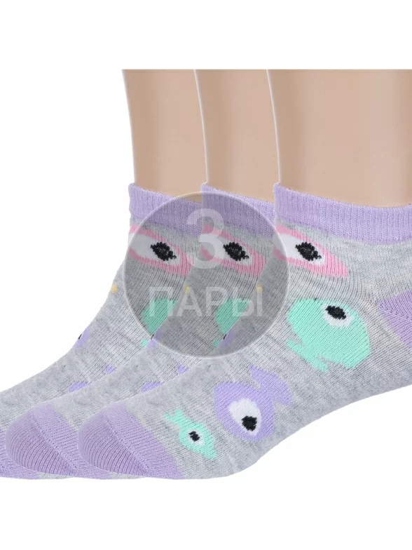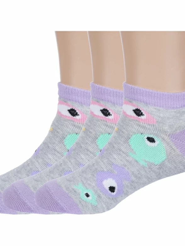 Комплект детских носков из 3 пар, летние или межсезонные, короткие, цвет серый, прикольные, состав: 64% хлопок, 21% полиамид, 11% полипропилен, 4% эластан, фабричный артикул 3-С-1734. Производитель «КРАСНАЯ ВЕТКА» Россия под брендом «Красная ветка».