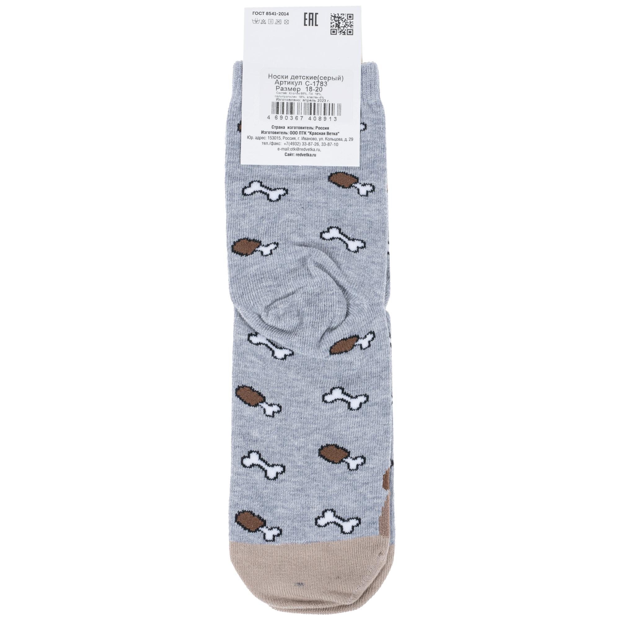 Комплект детских носков из 3 пар, круглогодичные, укороченные, цвет серый, повседневные, шов кеттельный (бесшовная технология), принт (рисунок): контрастные пятка / мысок / резинка, животные, с узором, состав: 58% хлопок, 19% полиамид, 19% полипропилен, 4% эластан, арт. 3-С-1783. Производитель «КРАСНАЯ ВЕТКА» Россия под брендом «Красная ветка».
