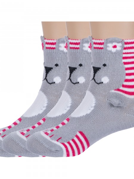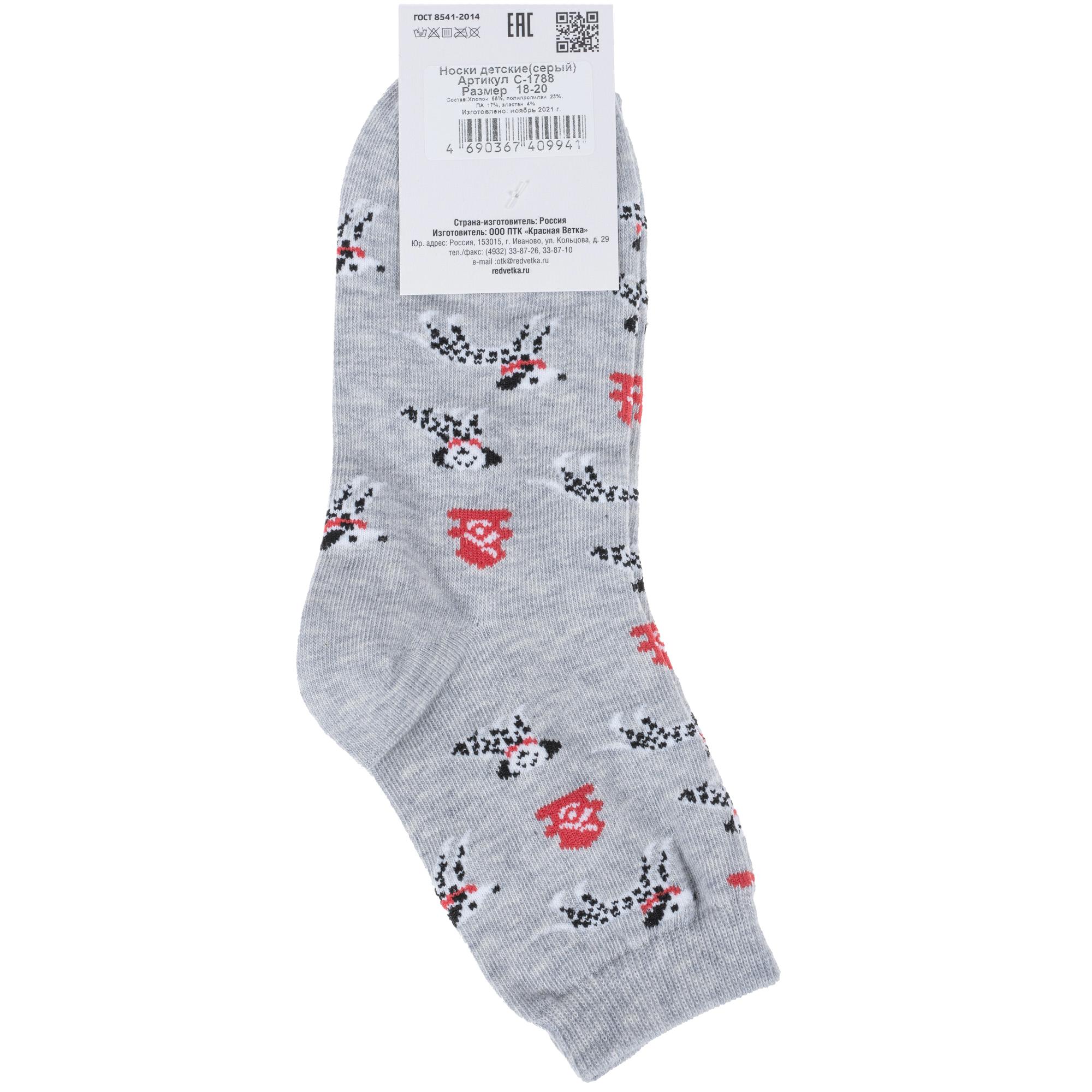Комплект детских носков из 3 пар, круглогодичные, укороченные, цвет серый, прикольные, состав: 56% хлопок, 23% полипропилен, 17% полиамид, 4% эластан, фабричный артикул 3-С-1788. Производитель «КРАСНАЯ ВЕТКА» Россия под брендом «Красная ветка».