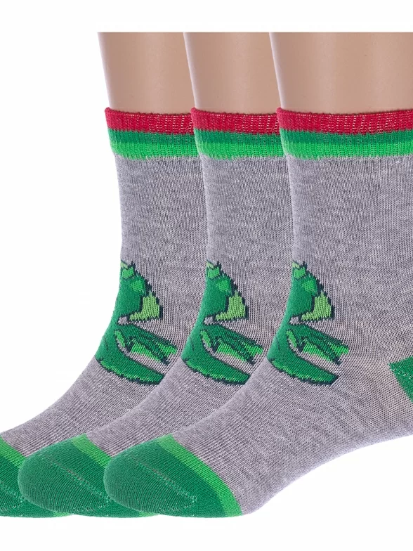 Комплект детских носков из 3 пар, круглогодичные, укороченные, цвет серый, с принтом, состав: 73% хлопок, 21% полиамид, 4% эластан, 2% полипропилен, арт. 3-С-2164. Производитель «КРАСНАЯ ВЕТКА» Россия под брендом «Красная ветка».