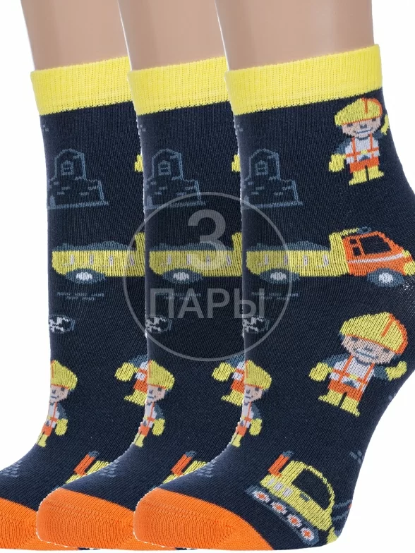 Комплект детских носков из 3 пар, круглогодичные, укороченные, цвет темно-синие, прикольные, состав: 57% хлопок, 21% полипропилен, 18% полиамид, 4% эластан, фабричный артикул 3-С-2152. Производитель «КРАСНАЯ ВЕТКА» Россия под брендом «Красная ветка».