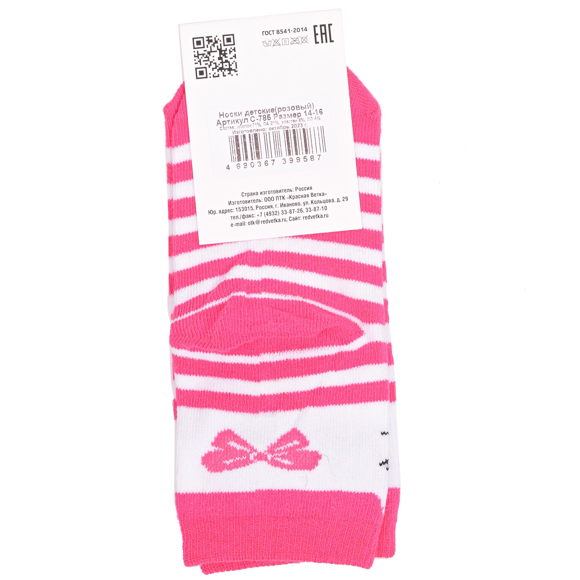 Комплект детских носков из 3 пар, круглогодичные, укороченные, цвет ярко-розовый, повседневные, возможно бесшовные, принт (рисунок): полоски, контрастные пятка/мысок/резинка, животные, с узором, состав: 71% хлопок, 21% полиамид, 4% эластан, 4% полипропилен, арт. 3-С-785. Производитель «КРАСНАЯ ВЕТКА» Россия под брендом «Красная ветка».