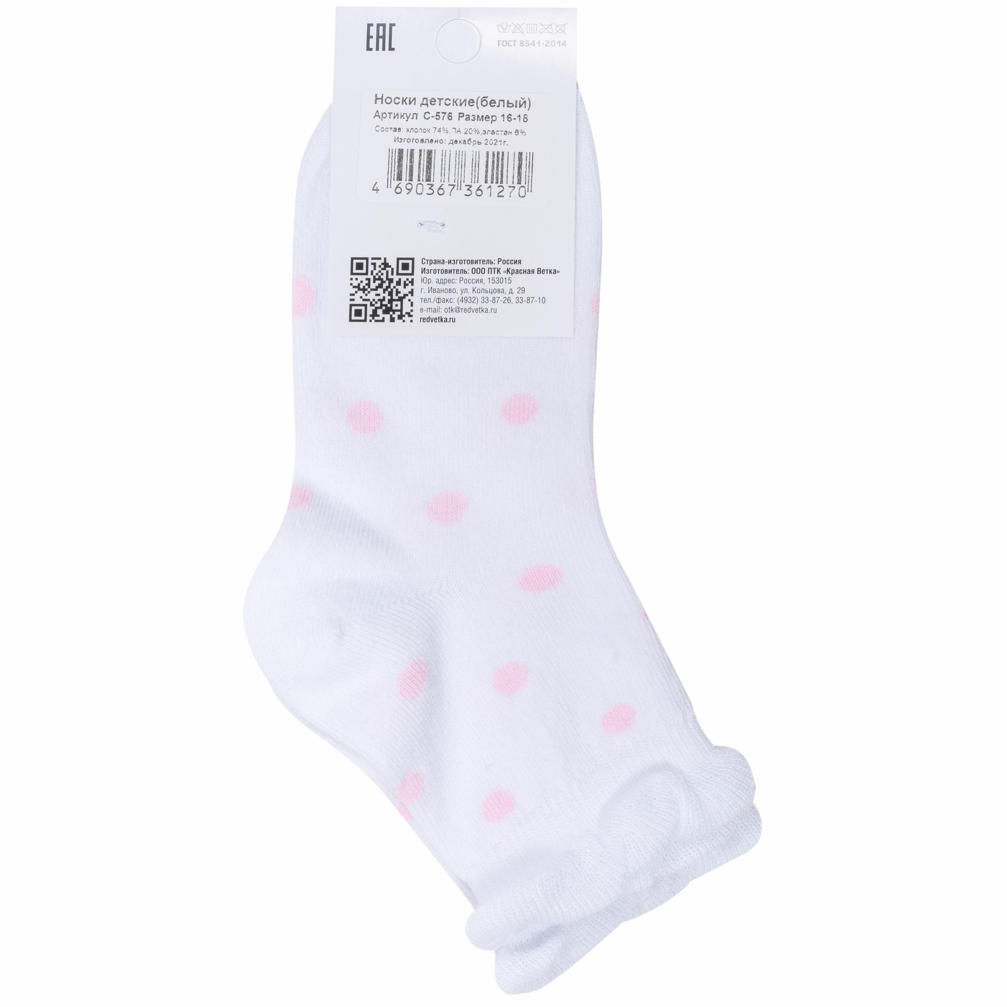 В комплект входят 3 пары белых носков артикула С-576 с индивидуальными фабричными этикетками.