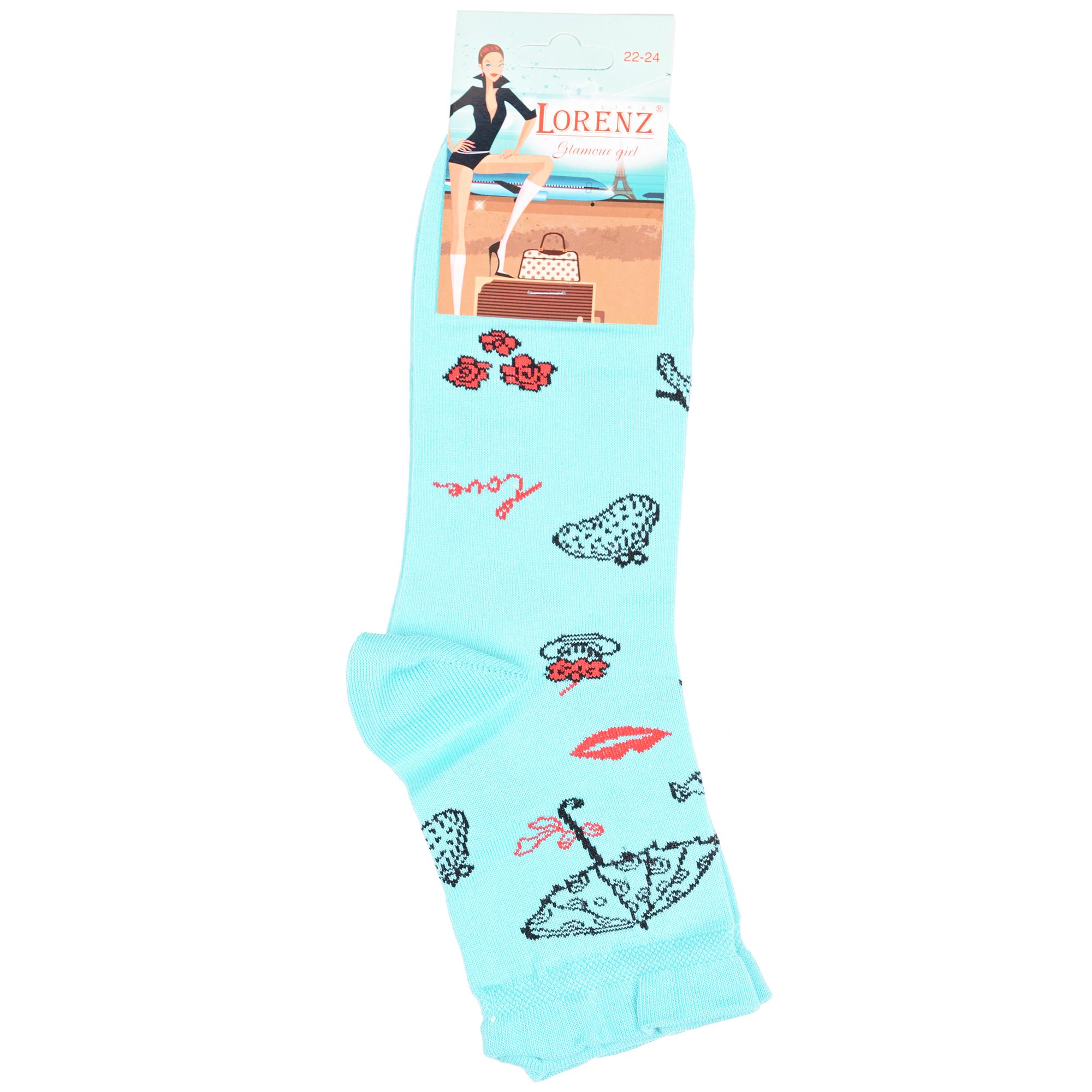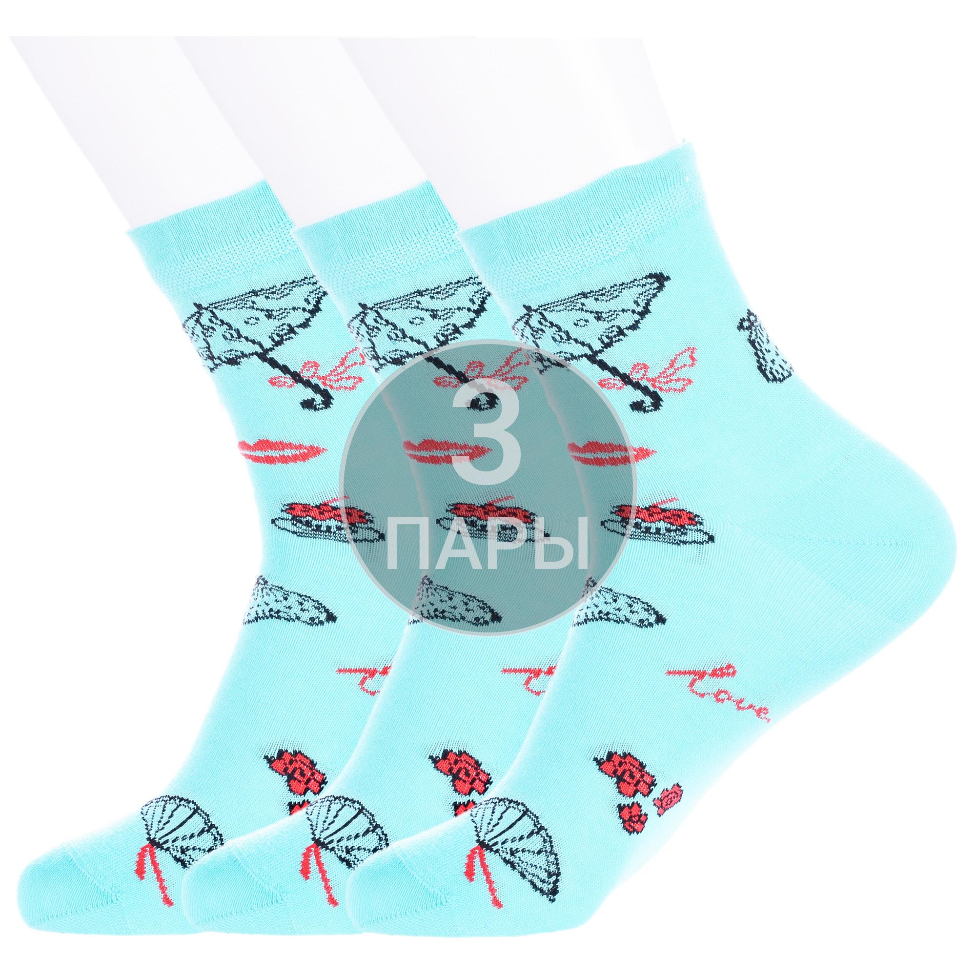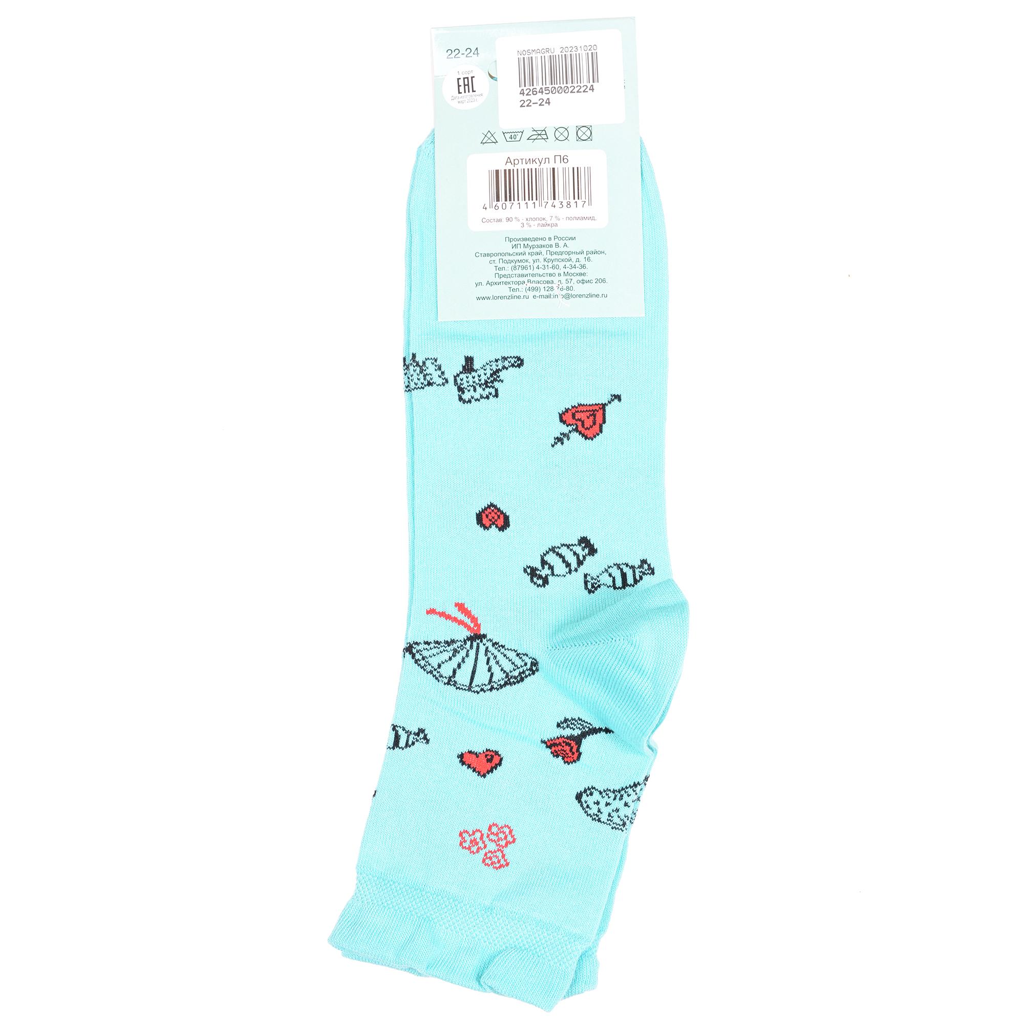 Комплект детских носков из 3 пар, круглогодичные, укороченные, цвет бирюзовый, с принтом, состав: 90% хлопок, 7% полиамид, 3% эластан (лайкра), арт. 3-П6. Производитель «ИП Мурзаков В.А., Ставропольский край, Россия» под брендом «Lorenzline».