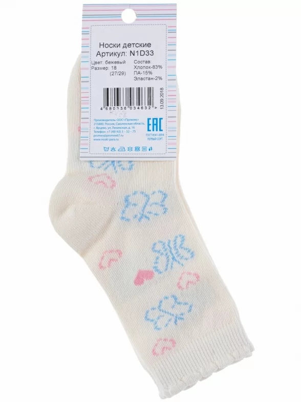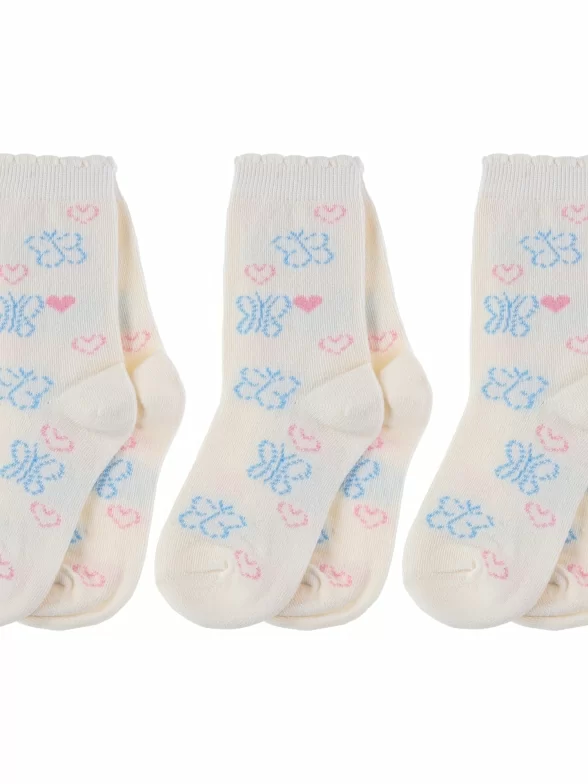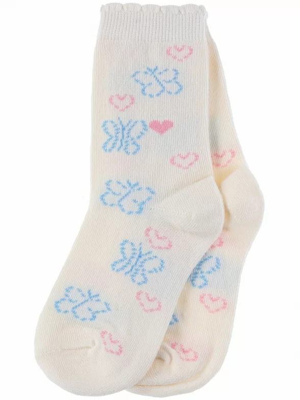 Комплект детских носков от бренда PARA socks: с принтом в виде бабочек и сердечек. Подойдут девочкам для прогулок, школы или детского сада в демисезонный период.