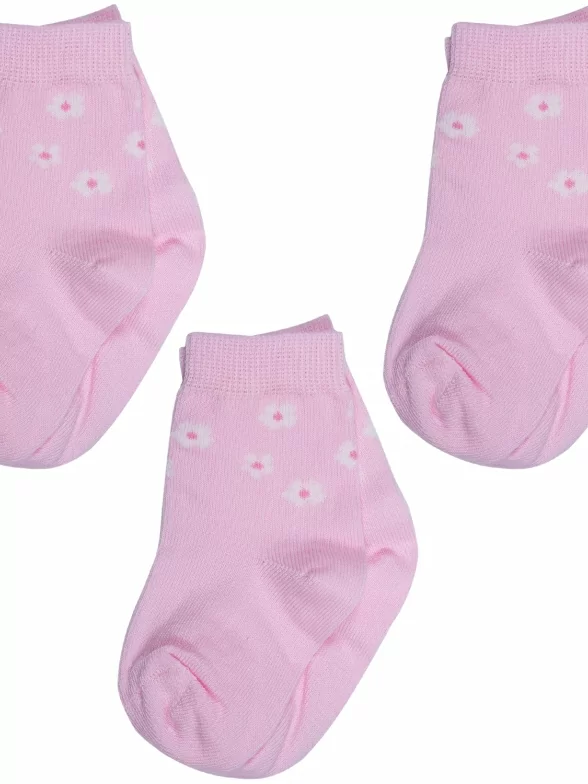 В комплект входят 3 одинаковые пары носков розового цвета с индивидуальными фабричными этикетками.