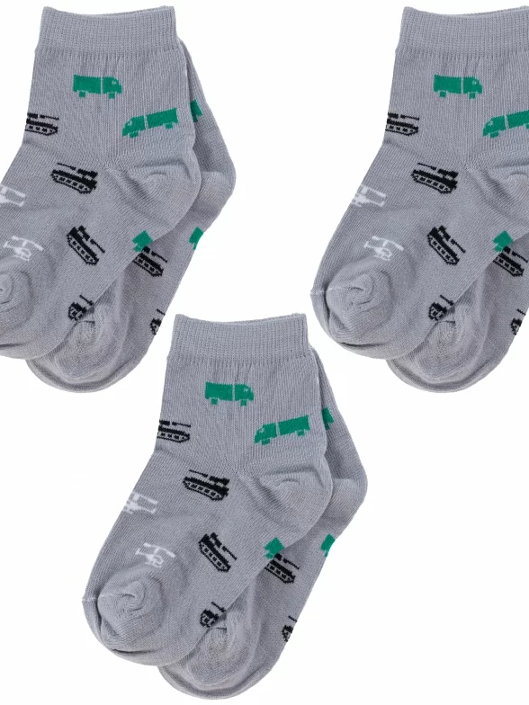 Комплект из 3 пар детских носков Альтаир, 3-А56, СВЕТЛО-СЕРЫЕ с черными танками