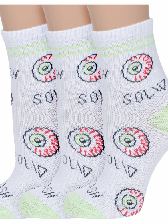 В комплект входят 3 одинаковые пары носков бело-салатового цвета арт. 2С2349, поставляются с индивидуальными фабричными этикетками в обычном или курьер-пакете.