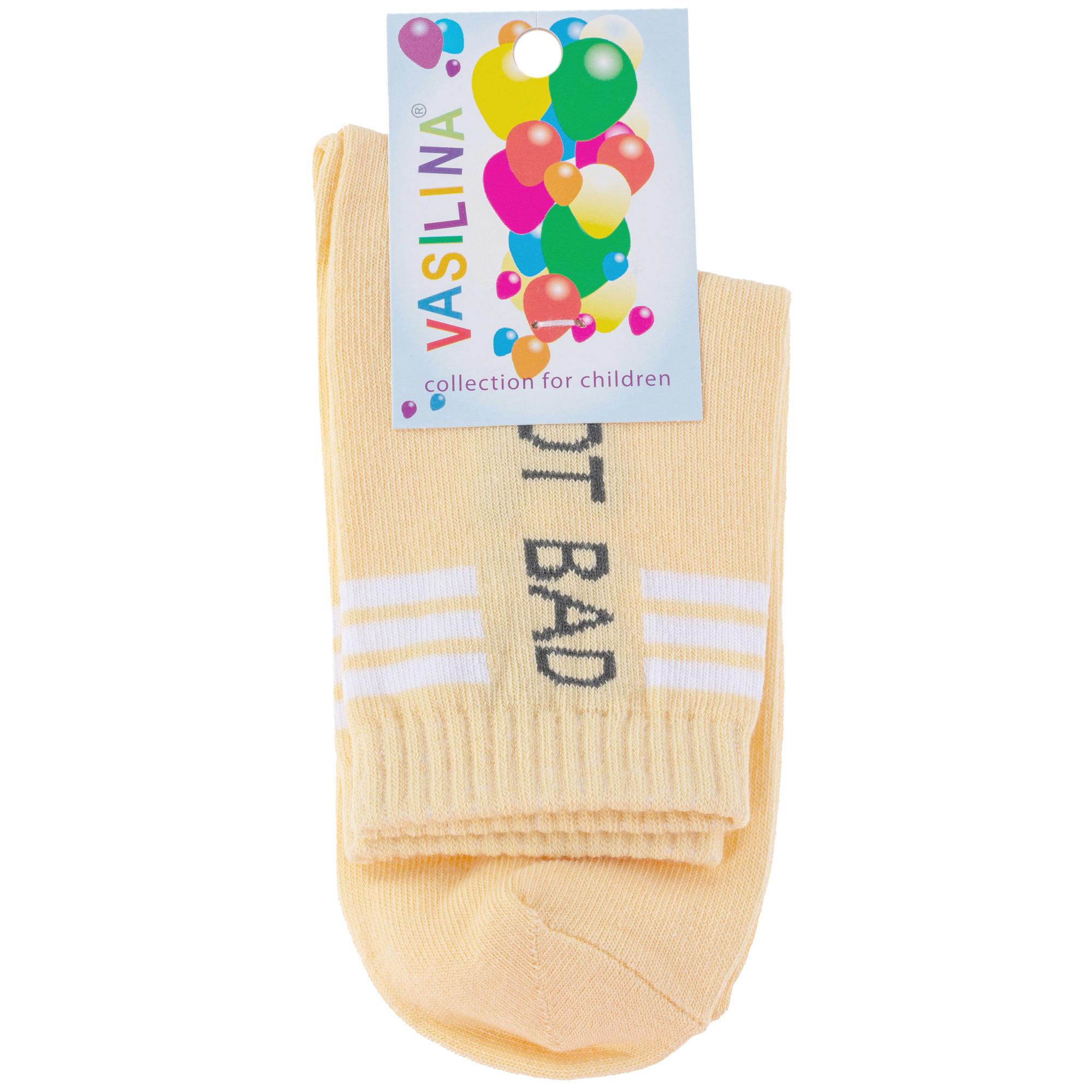 Комплект детских носков бренда VASILINA с полосками и надписью "Not bad" (с англ. "Неплохо") на паголенке. Подойдут мальчикам и девочкам для прогулок и школы в демисезонный период.