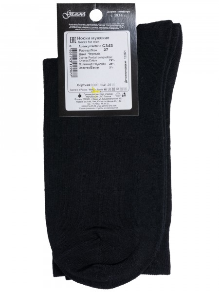 В комплект входят 3 пары черных носков артикула С408 с индивидуальными фабричными этикетками.