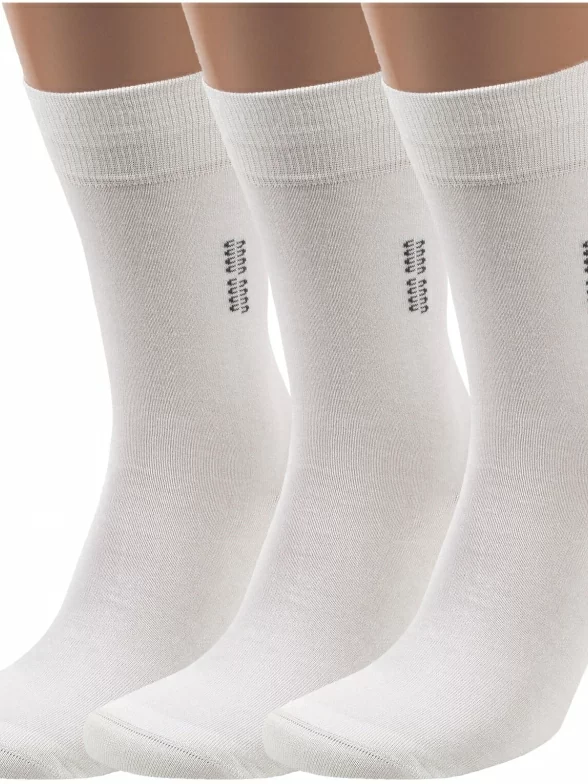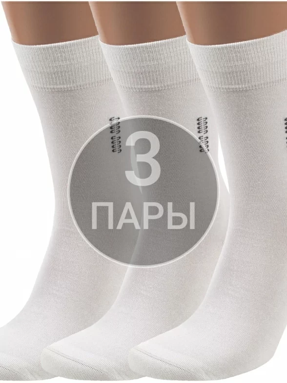 Комплект мужских носков из 3 пар, летние или межсезонные, средней длины, цвет белый, классические, шов кеттельный (бесшовная технология), принт (рисунок): однотонный, небольшой рисунок, состав: 85% бамбук, 15% полиамид, арт. 3-X-1111. Производитель «ХОХ» Россия под брендом «Хох».