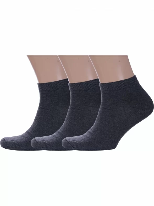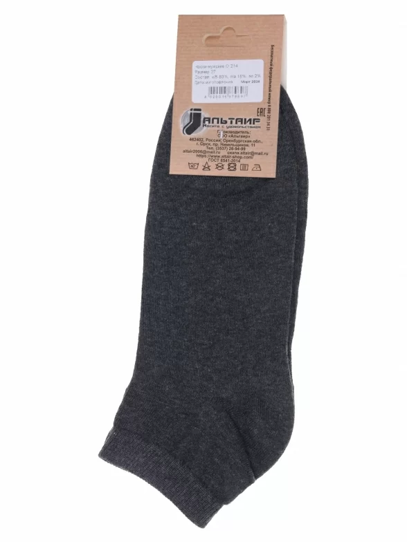 Комплект мужских носков из 3 пар, летние, короткие, цвет антрацит, классические, шов обычный (не бесшовные), принт (рисунок): без рисунков/узоров, состав: 80% хлопок, 18% полиамид, 2% эластан, арт. 3-О214. Производитель «ООО Альтаир, г. Орск, Оренбургская обл, Россия» под брендом «Альтаир».
