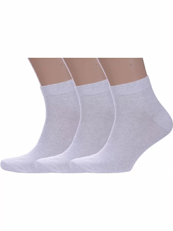 Комплект мужских носков из 3 пар, летние, короткие, цвет светло-серый, классические, шов обычный (не бесшовные), принт (рисунок): без рисунков/узоров, состав: 80% хлопок, 18% полиамид, 2% эластан, арт. 3-О214. Производитель «ООО Альтаир, г. Орск, Оренбургская обл, Россия» под брендом «Альтаир».