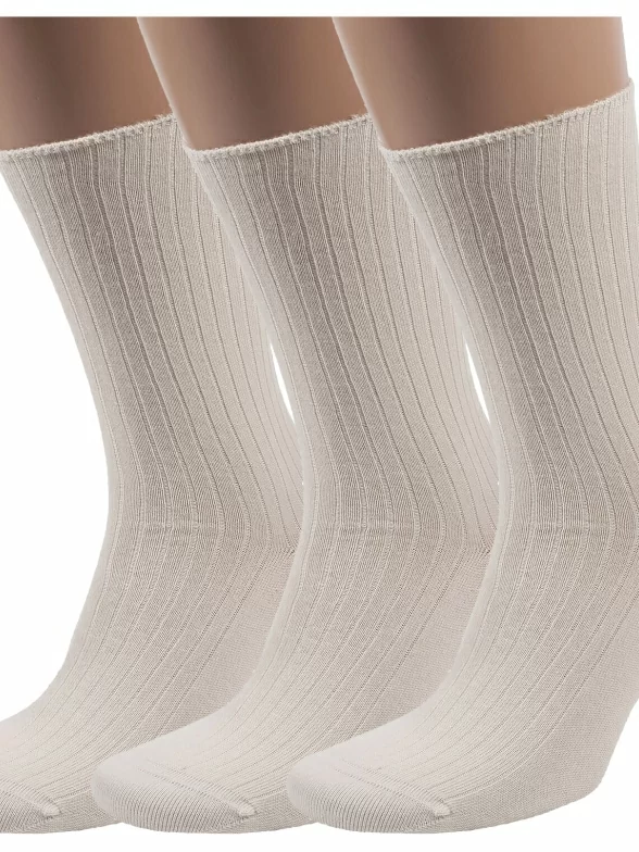 Комплект мужских носков из 3 пар, круглогодичные, средней длины, цвет бежевый, медицинские, возможно бесшовные, принт (рисунок): в рубчик, однотонный, состав: 80% хлопок, 15% полиамид, 5% эластан, арт. 3-X-201. Производитель «ХОХ» Россия под брендом «Хох».