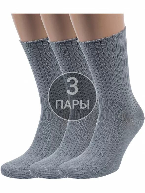 Комплект мужских носков из 3 пар, круглогодичные, средней длины, цвет серый, медицинские, шов кеттельный (бесшовная технология), принт (рисунок): с узором, однотонный, в рубчик, состав: 80% хлопок, 15% полиамид, 5% эластан, арт. 3-X-201. Производитель «ХОХ» Россия под брендом «Хох».