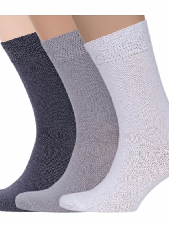 В комплект входят 3 пары носков с индивидуальными фабричными этикетками: по 1 паре темно-серых, светло-серых и белых носков.