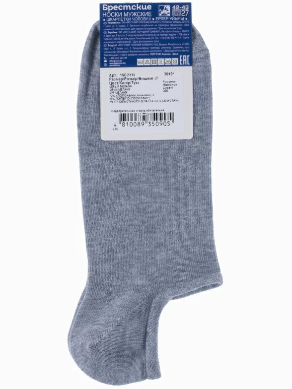 В комплект входят 3 пары носков арт. 15С2315: по 1 паре черного, серого и белого. Поставляются с индивидуальными фабричными этикетками в обычном или курьер пакете.