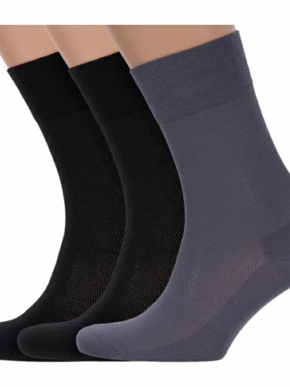 В комплект входят 2 пары черных и 1 пара серых носков арт. 18С2129 с индивидуальными фабричными этикетками.