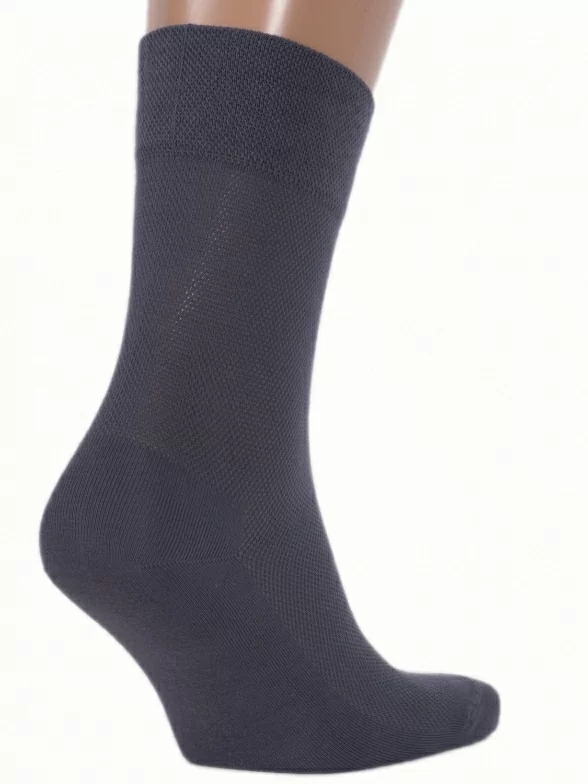 Модель средней длины с двойным бортом (манжетом резинки) и неощутимым швом на мыске; верхняя часть стопы и паголенок оформлены сетчатой вязкой. Изготовлены на фабрике в Беларуси в г. Брест из хлопка с добавлением полиамида (70% хлопок, 30% полиамид) для износостойкости изделия.