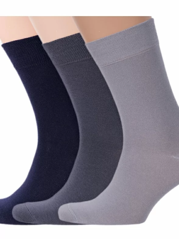 В комплект входят 3 пары носков с индивидуальными фабричными этикетками: по 1 паре темно-серых, светло-серых и темно-синих носков.