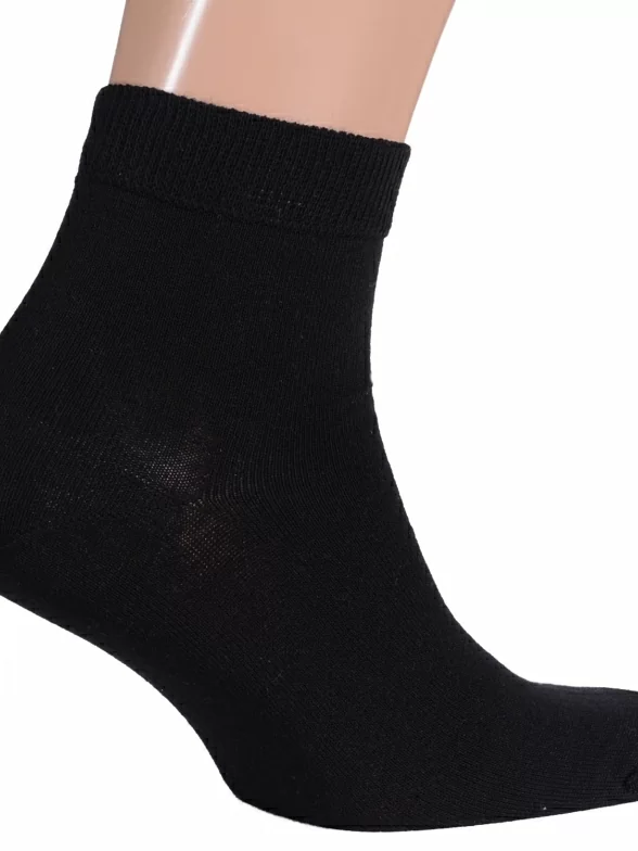 Связаны на фабрике в Беларуси в г. Бресте из хлопка с добавлением полиэстера и эластана для износостойкости изделия и комфортной посадки. Укороченная модель с двойным бортом (манжетом резинки) и неощутимым швом на мыске.