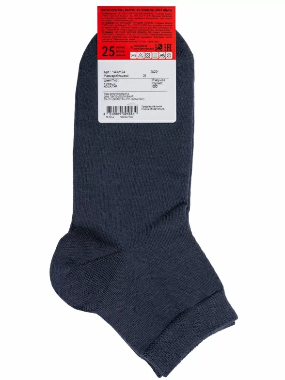 В комплект входят 3 пары носков арт. 14С2124 с индивидуальными фабричными этикетками: по 1 паре черных, темно-серых и серых.
