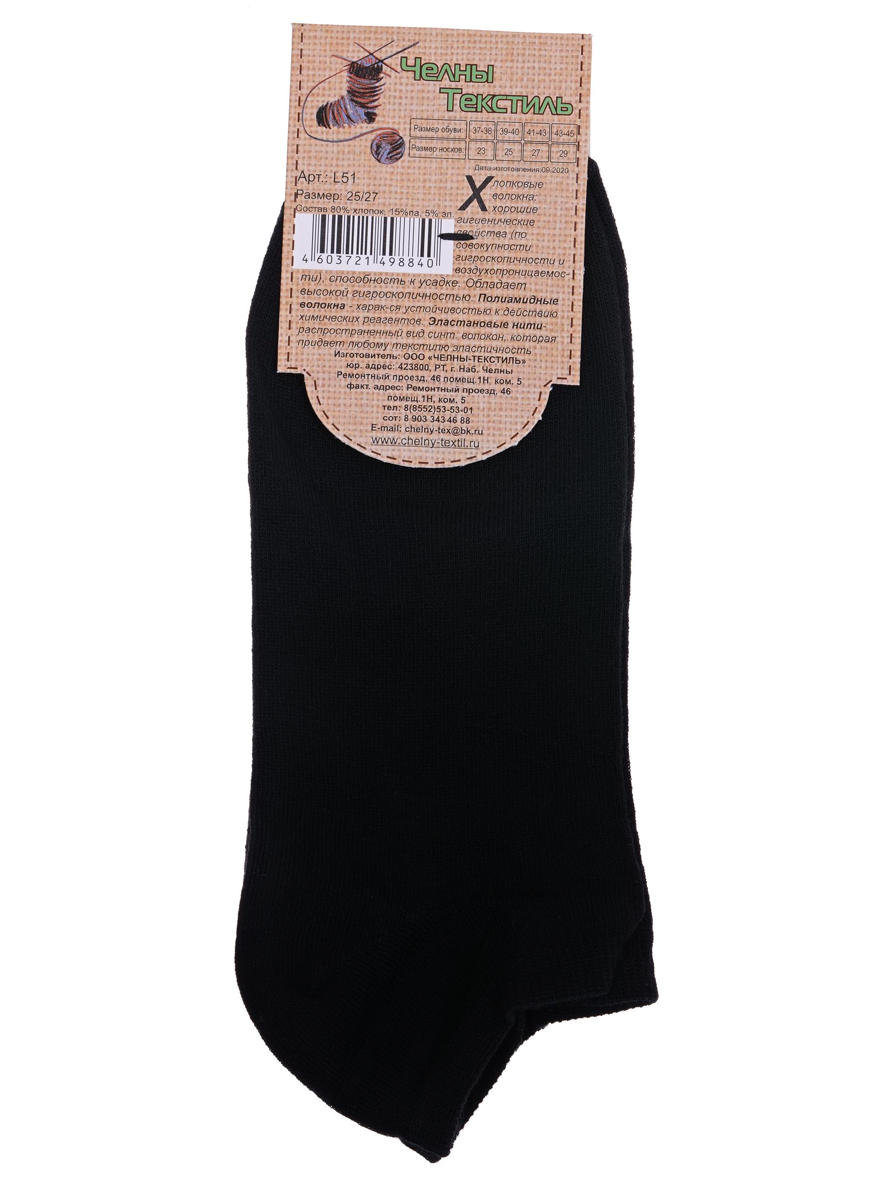 Комплект носков унисекс из 3 пар, межсезонные или летние, короткие, цвет черный, классические, состав: 80% хлопок, 15% полиамид, 5% эластан, арт. 3-L51. Производитель «ЧЕЛНЫ ТЕКСТИЛЬ» Россия под брендом «Челны текстиль».