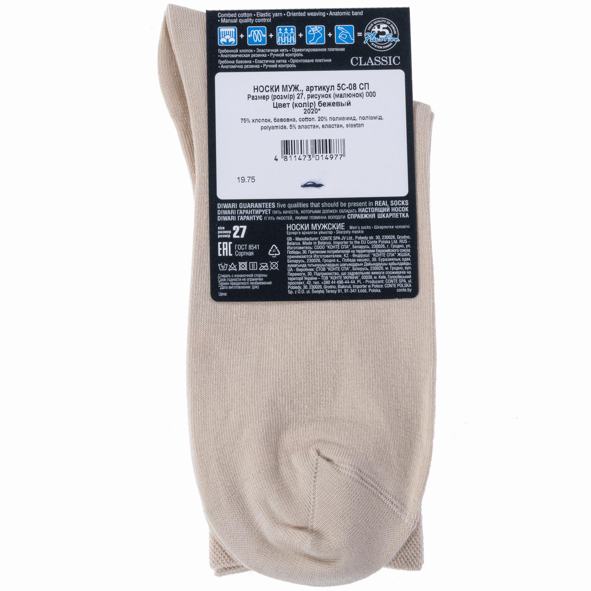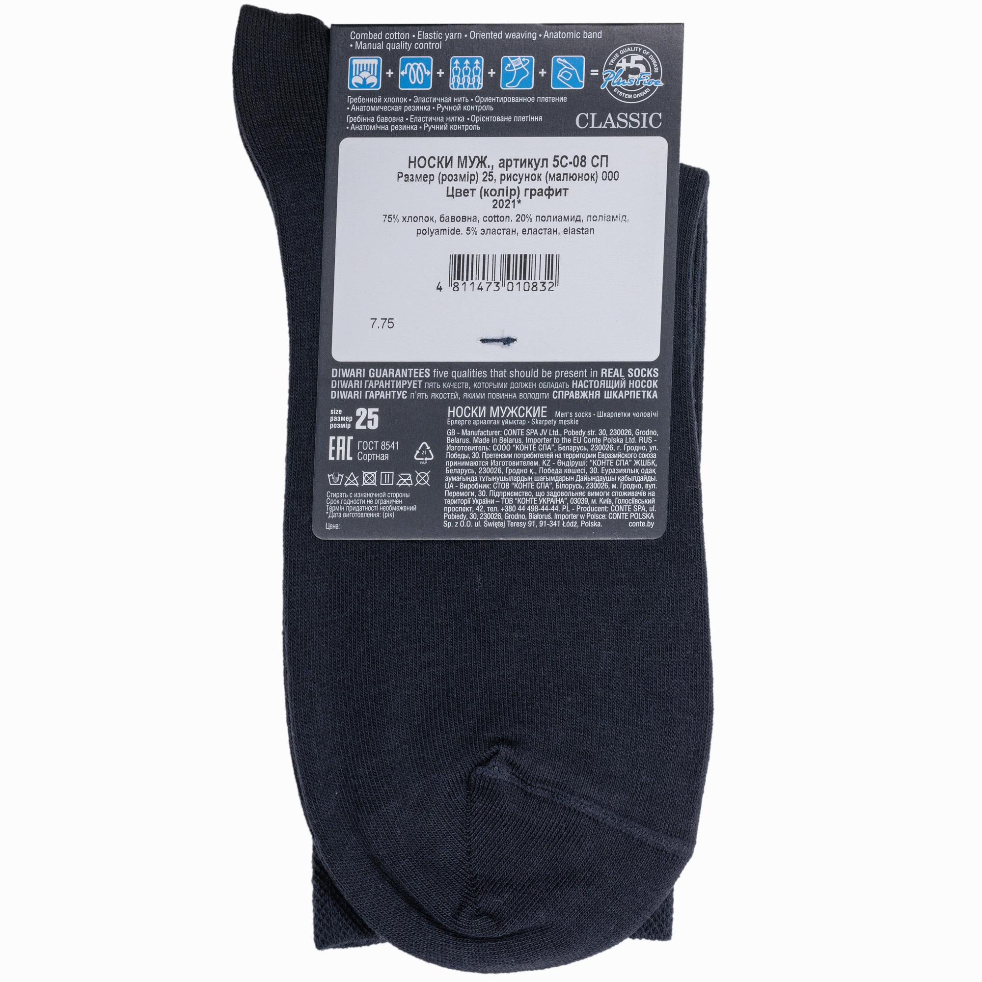 В комплект входят 3 пары носков артикула 5С-08СП с индивидуальными фабричными этикетками: по 1 паре черного, бежевого и графитового цветов. Носки поставляются в обычном или курьер-пакете.