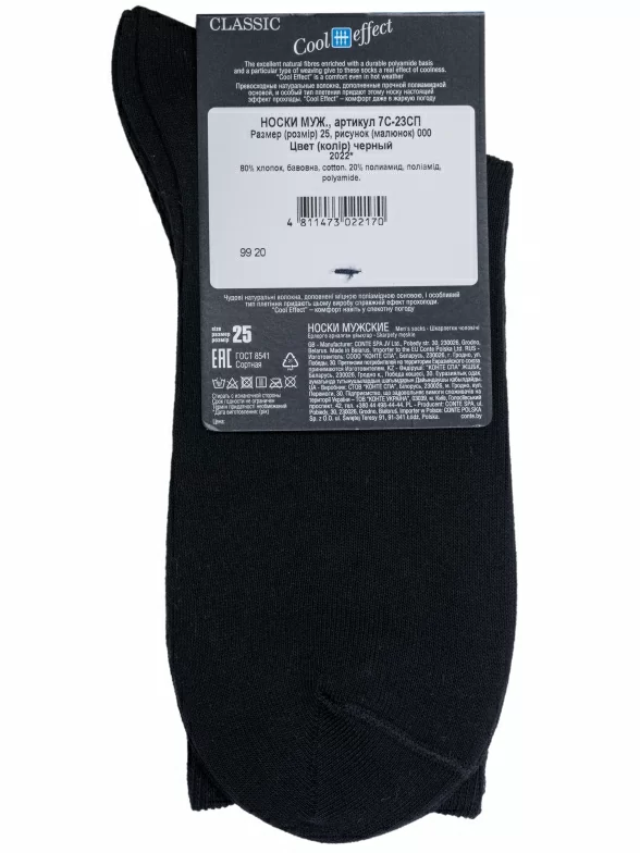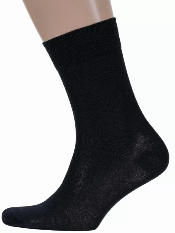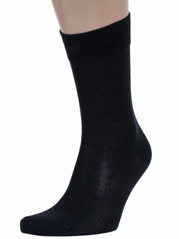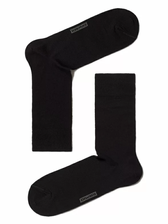 Комплект мужских носков из 3 пар, межсезонные или летние, средней длины, цвет рис. 000, черный, классические, шов кеттельный (бесшовная технология), принт (рисунок): однотонный, без рисунков/узоров, состав: 80% хлопок, 20% полиамид, арт. 3-7С-23СП. Производитель «DiWaRi» Беларусь под брендом «Diwari».