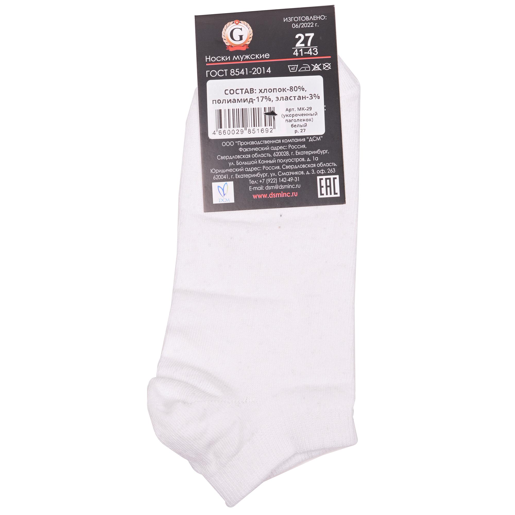 Комплект мужских носков из 3 пар, летние или межсезонные, короткие, цвет белый, классические, шов обычный (не бесшовные), принт (рисунок): без рисунков/узоров, однотонный, состав: 80% хлопок, 17% полиамид, 3% эластан, арт. 3-МК-29. Производитель «ООО Производственная компания "ДСМ", Россия» под брендом «Grand line».