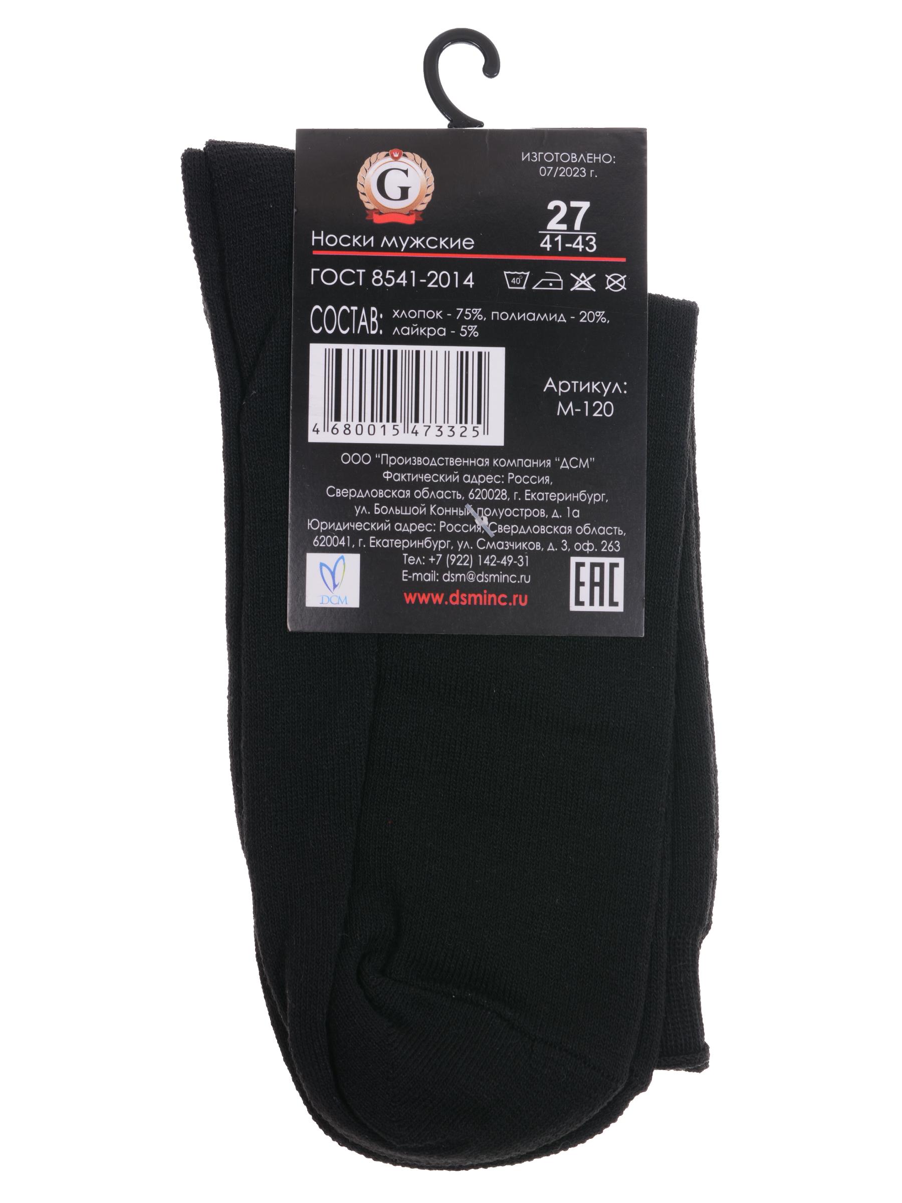 Комплект мужских носков из 3 пар, круглогодичные, средней длины, цвет черный, классические, шов обычный (не бесшовные), принт (рисунок): без рисунков/узоров, состав: 75% хлопок, 20% полиамид, 5% эластан (лайкра), арт. 3-М-120. Производитель «ООО Производственная компания "ДСМ", Россия» под брендом «Grand line».