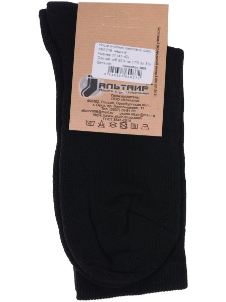 Комплект мужских носков из 3 пар, круглогодичные, средней длины, цвет черный, классические, шов обычный (не бесшовные), принт (рисунок): без рисунков/узоров, однотонный, состав: 80% хлопок, 17% полиамид, 3% эластан, арт. 3-М-150. Производитель «ООО Производственная компания "ДСМ", Россия» под брендом «Grand line».
