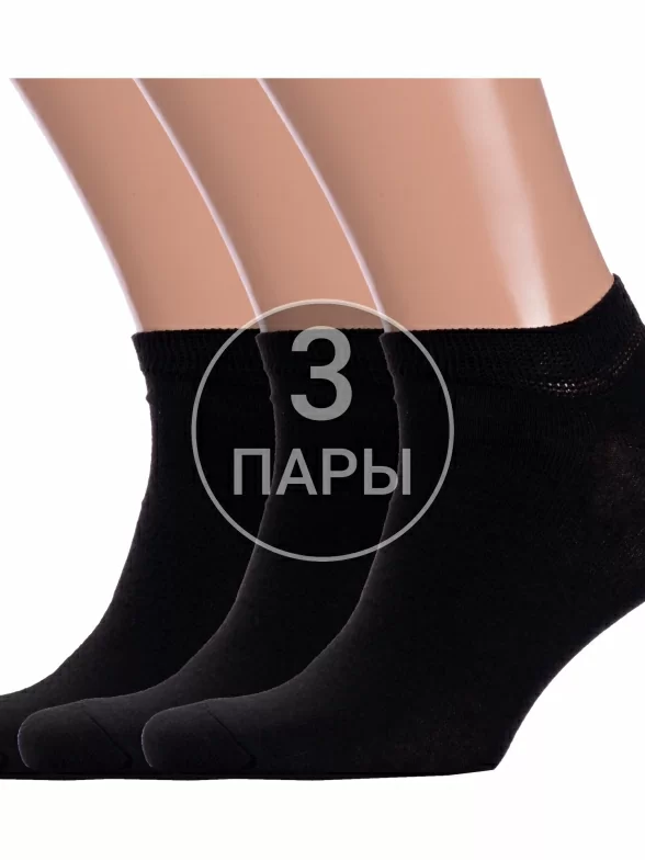 Комплект мужских носков из 3 пар, летние или межсезонные, короткие, цвет черный, классические, шов обычный (не бесшовные), принт (рисунок): без рисунков/узоров, однотонный, состав: 80% хлопок, 17% полиамид, 3% эластан, арт. 3-МК-29. Производитель «ООО Производственная компания "ДСМ", Россия» под брендом «Grand line».