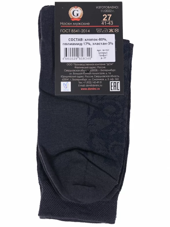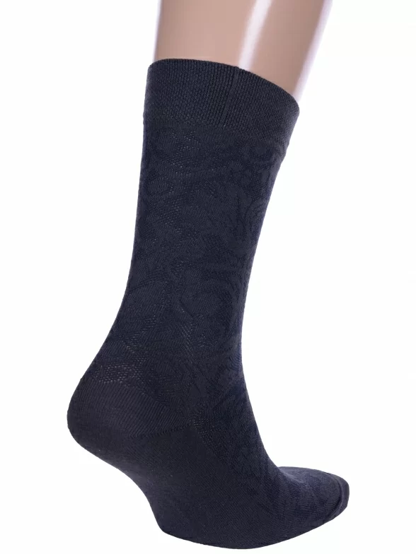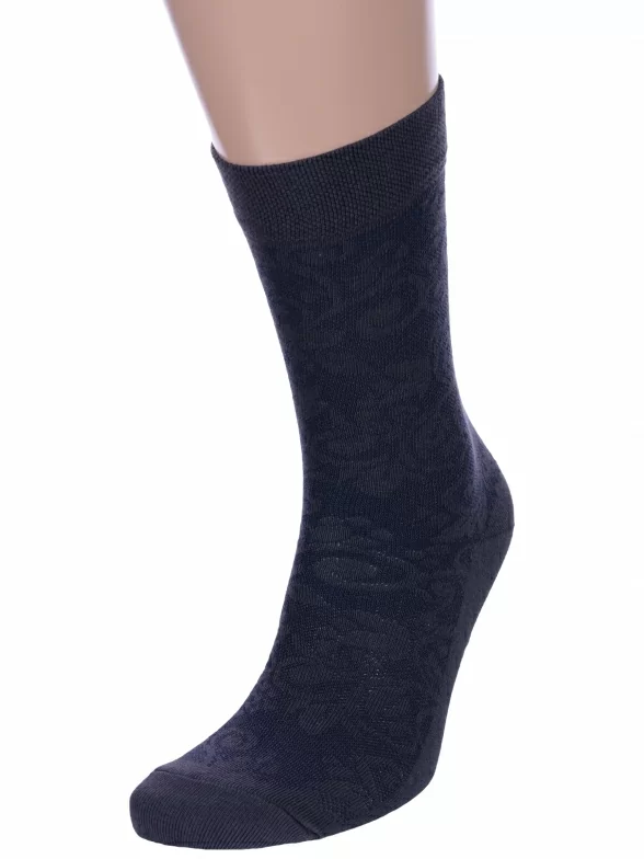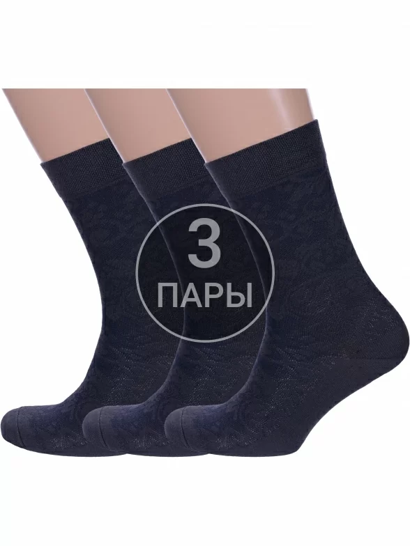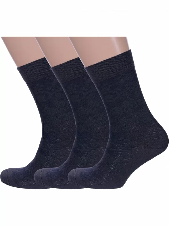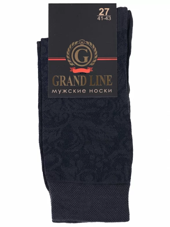Комплект мужских носков из 3 пар, круглогодичные, средней длины, цвет графит, ажурные, шов обычный (не бесшовные), принт (рисунок): цветы / растения, с узором, состав: 80% хлопок, 17% полиамид, 3% эластан, арт. 3-М-157. Производитель «ООО Производственная компания "ДСМ", Россия» под брендом «Grand line».