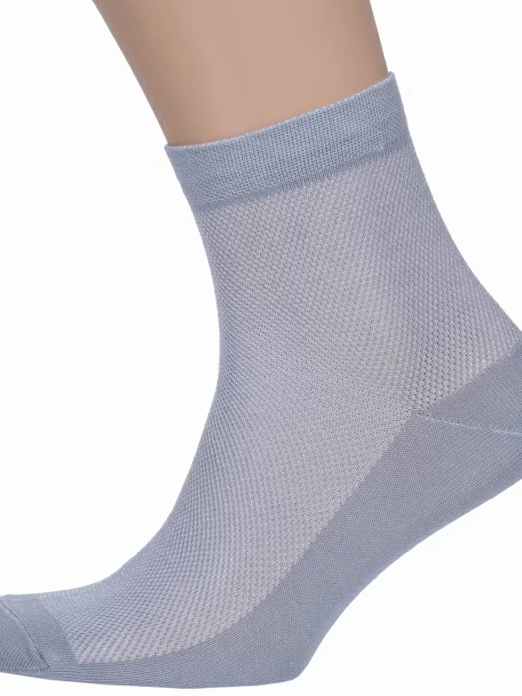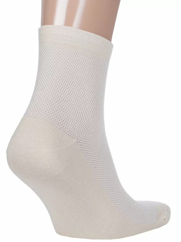 Однотонная укороченная модель с двойным бортом (манжетом резинки) и сетчатой вязкой на верхней части стопы и паголенке. Изготовлены на фабрике в Подмосковье из хлопка (85%) с добавлением полиамида (15%) для повышения износостойкости изделия.