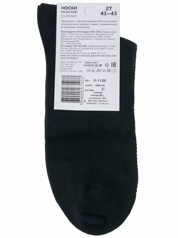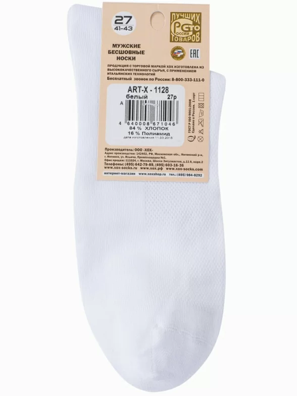 В комплект входят 3 пары носков артикула X-1128 с индивидуальными фабричными этикетками: по 1 паре белых, черных и серых.