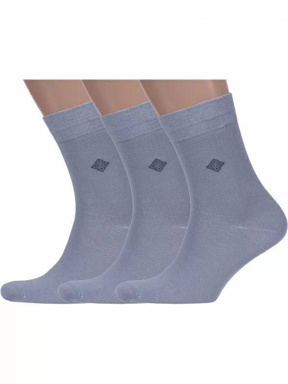 Комплект мужских носков из 3 пар, круглогодичные, средней длины, цвет серый, классические, шов плоский, принт (рисунок): однотонный, небольшой рисунок, состав: 88% хлопок, 10% полиамид, 2% эластан, арт. 3-X-1205. Производитель «ХОХ» Россия под брендом «Хох».
