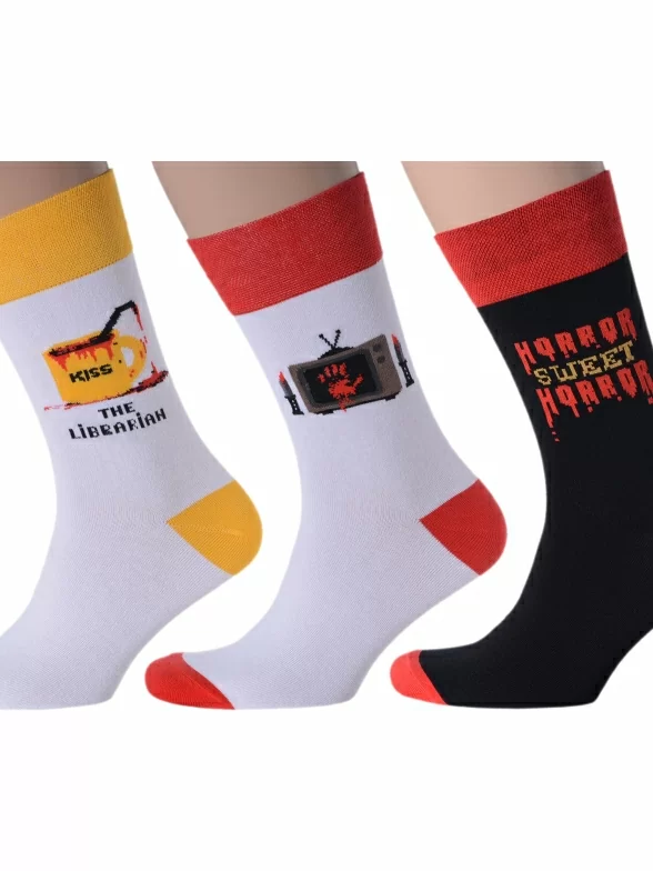 Комплект мужских носков бренда MSCLUB с принтами на тематику фильмов ужасов.